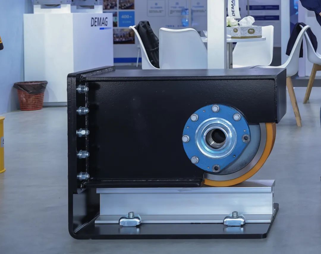 本次德马格展出的新款PUR行走轮箱是针对中国市场高速重载的包胶轮需求新开发的一款产品,其使用了创新材料和更优化的设计,使得新款PUR行走轮箱相较于前一代产品,速度和承载力提高了10%,其优异的表现在各种测试中均得到了验证。