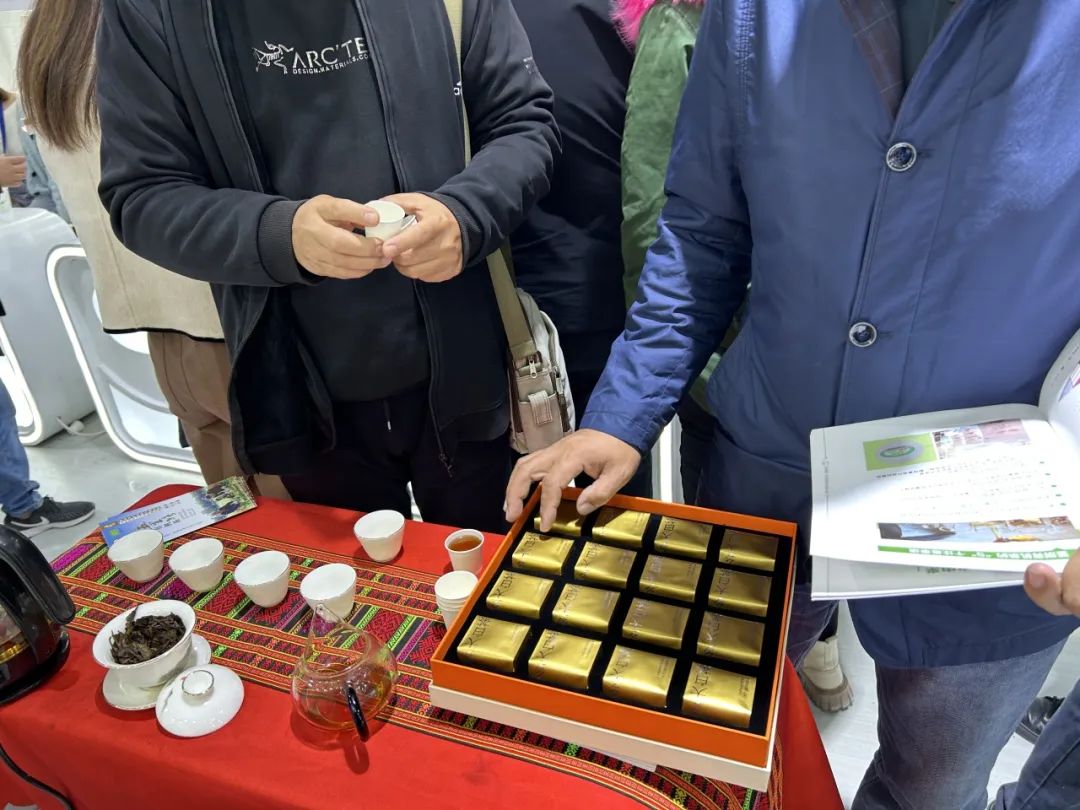 当五里路展位上煮茶壶的蒸汽冒起,茶香四溢,吸引众人踱步停留,品尝五里路黎族大白茶。入口柔顺,果香馥郁,甜感持久的特点抓住了大家的舌尖。