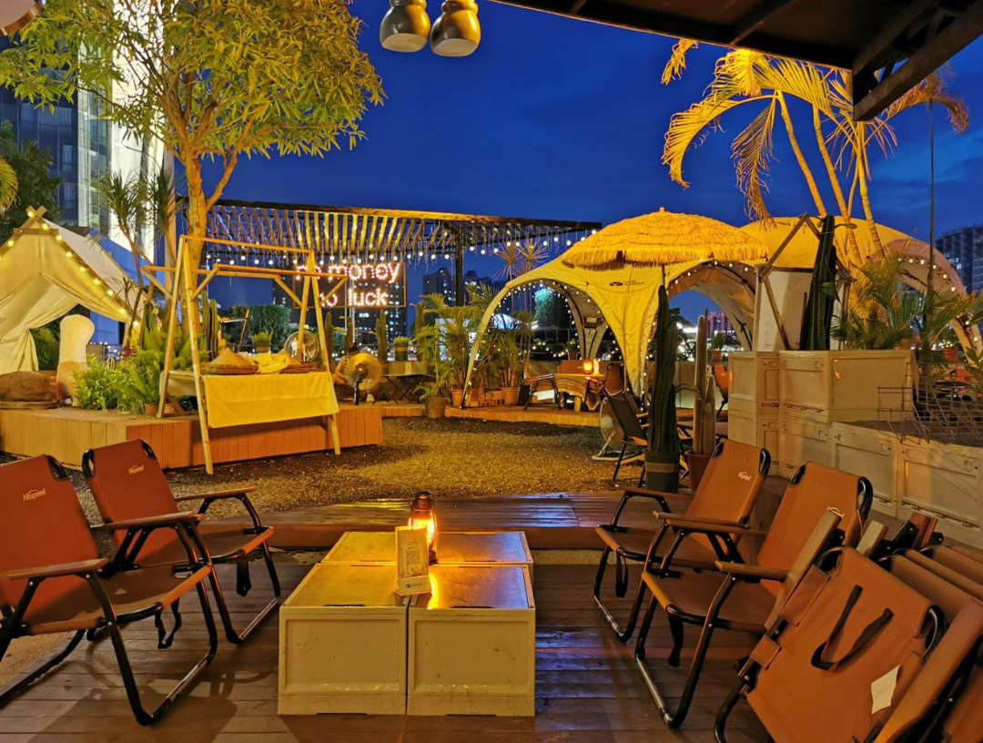 会展山整体造型采用“退台式”商业设计理念,可全景俯瞰民歌湖和快速环道,远眺地王大厦,以别具特色的吃喝玩乐业态为商业定位,为都市人保留一处亲近自然的休闲地带。秉承时尚、文艺、潮流、生态的经营理念,会展山各商家充分利用露台特色,构筑了一道城市休闲风景线,打造了品味格调与悠闲生活兼得的个性化商业。目前进驻的知名品牌有九田家、暮野、POP、龍井(LONG DRINK)、HEY BABY、一格摄影……