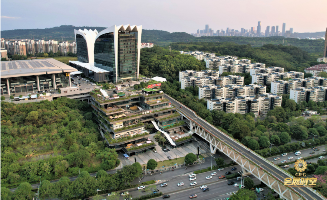 会展山与南宁国际会展中心、会展大厦、航洋城、民歌湖、石门森林公园等商务文化娱乐圈融为一体,周边聚集多个高端酒店及商业群。