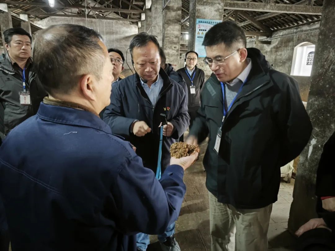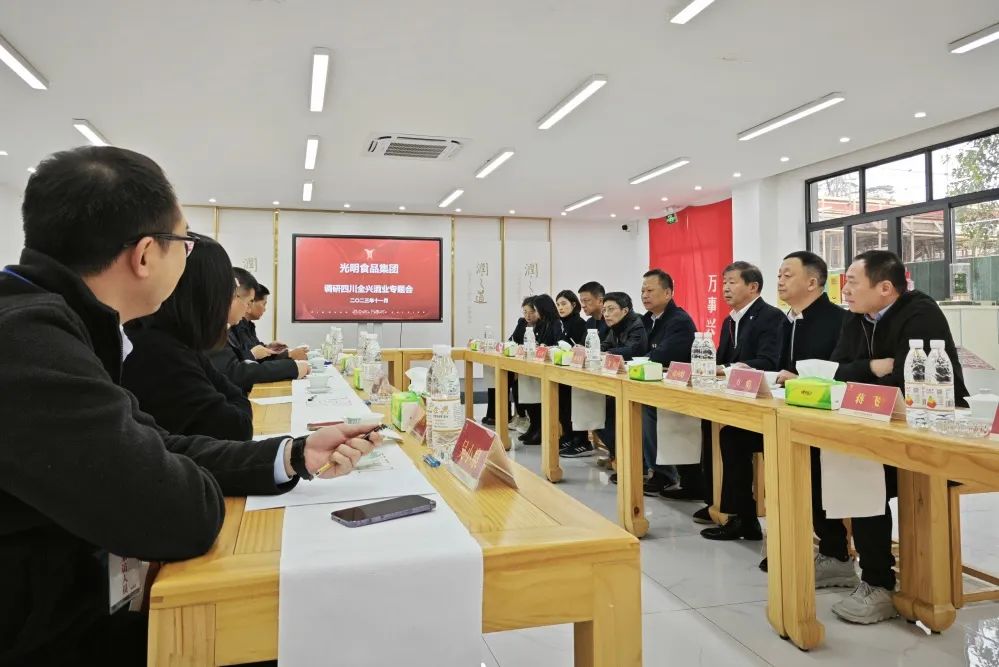 11月16日,光明集团副总裁陆罡一行到四川全兴酒业进行专题调研,开展安全专项检查,糖酒集团党委副书记、总裁沈军,副总裁龚如杰,相关部室负责人参加调研。