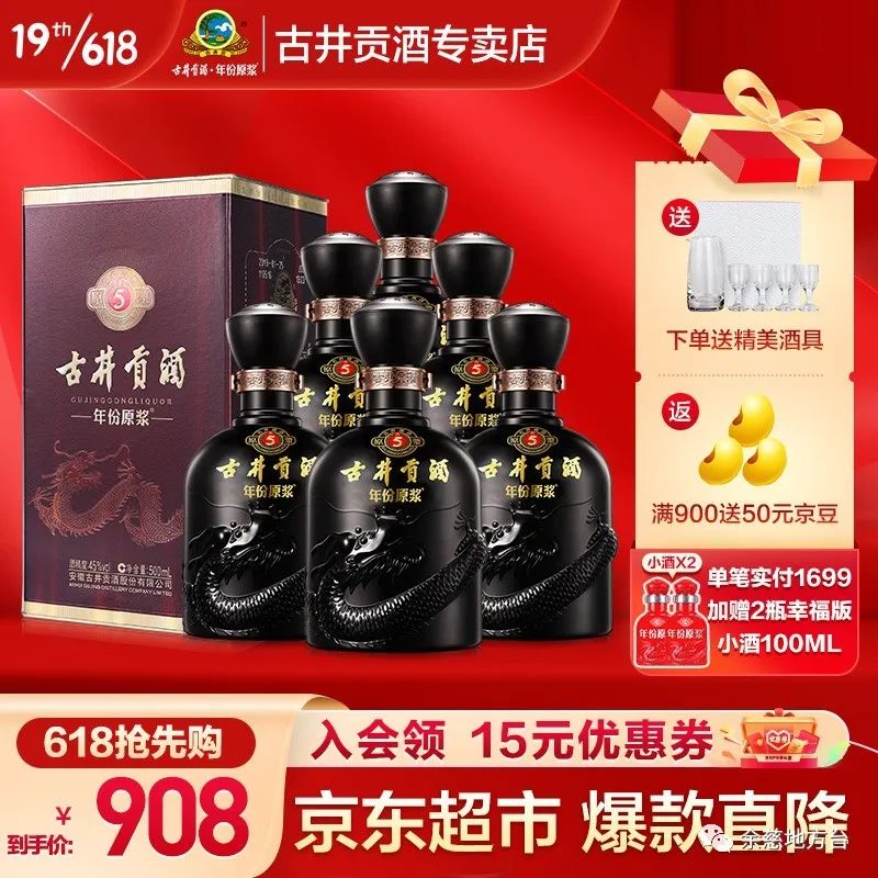 【酒厂直供 官方授权】古井贡酒年份原浆古5 45度浓香型白酒 纯粮食固态酿造 500ml6瓶 整箱装内含礼品袋(95987)【酒厂直供 官方授权】古井贡酒年份原浆古5 45度浓香型白酒 纯粮食固态酿造 500ml6瓶 整箱装内含礼品袋,到手价:【1187】元,原价【1187】,共节省【0】元NAUTICA诺帝卡铝框行李箱男万向轮结实拉杆箱28英寸大容量女士旅行箱黑色密码皮箱(95979)天谱乐食 澳洲原切M3牛腱肉 1kg 安格斯谷饲270天 牛肉生鲜(95978)西凤酒 御窖原唐N201 绵柔凤香型 52度 500ml6瓶 整箱装(95983)英雄HERO钢笔367学生办公练字正姿铱金钢笔4支墨囊生肖蛇EF尖(95984)贵州鸭溪酒业公司 浓香型高度白酒 商务送礼酒水 鸭溪窖 54度500ml6瓶(95981)恒源祥中年妈妈装春装新款方领印花针织衫女中老年女装春秋洋气长袖打底衫HT3612191397 灰蓝色 M(95976)【五粮液总厂生产】五粮液股份出品 五粮情 浓香型高度白酒 婚庆婚宴商务礼盒装粮食酒白酒 42度 五粮情醇和 500ml6瓶【整箱装】(95982)叙府品鉴师 52度500ml 浓香型白酒 纯粮酿造 礼品礼盒酒 500ml2瓶礼盒装(95986)【固态粮食酿造】北京二锅头出口型华都白酒原浆高粱酒600ml 清香型 53度单瓶装(95980)声明:商品来源京东商城!关注我们获取更多优惠券信息
