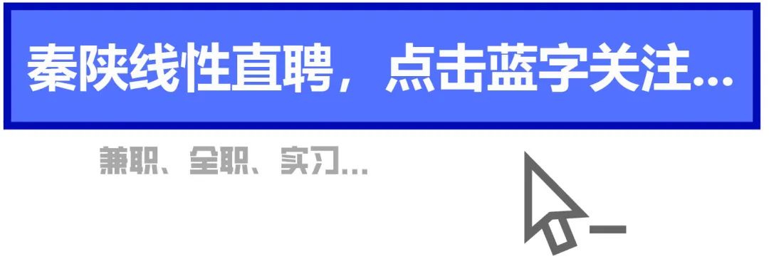 秦陕线性直聘【温馨提醒】:西安兼职全职需谨慎,请先核实招聘方身份,仔细了解招聘内容,如工资结算时间、工作时间、工资提成等,切勿轻易转账、交订金等。本公众号招聘信息解释权归原发布者,招聘过程中产生的一切问题,与本公众号无关。
