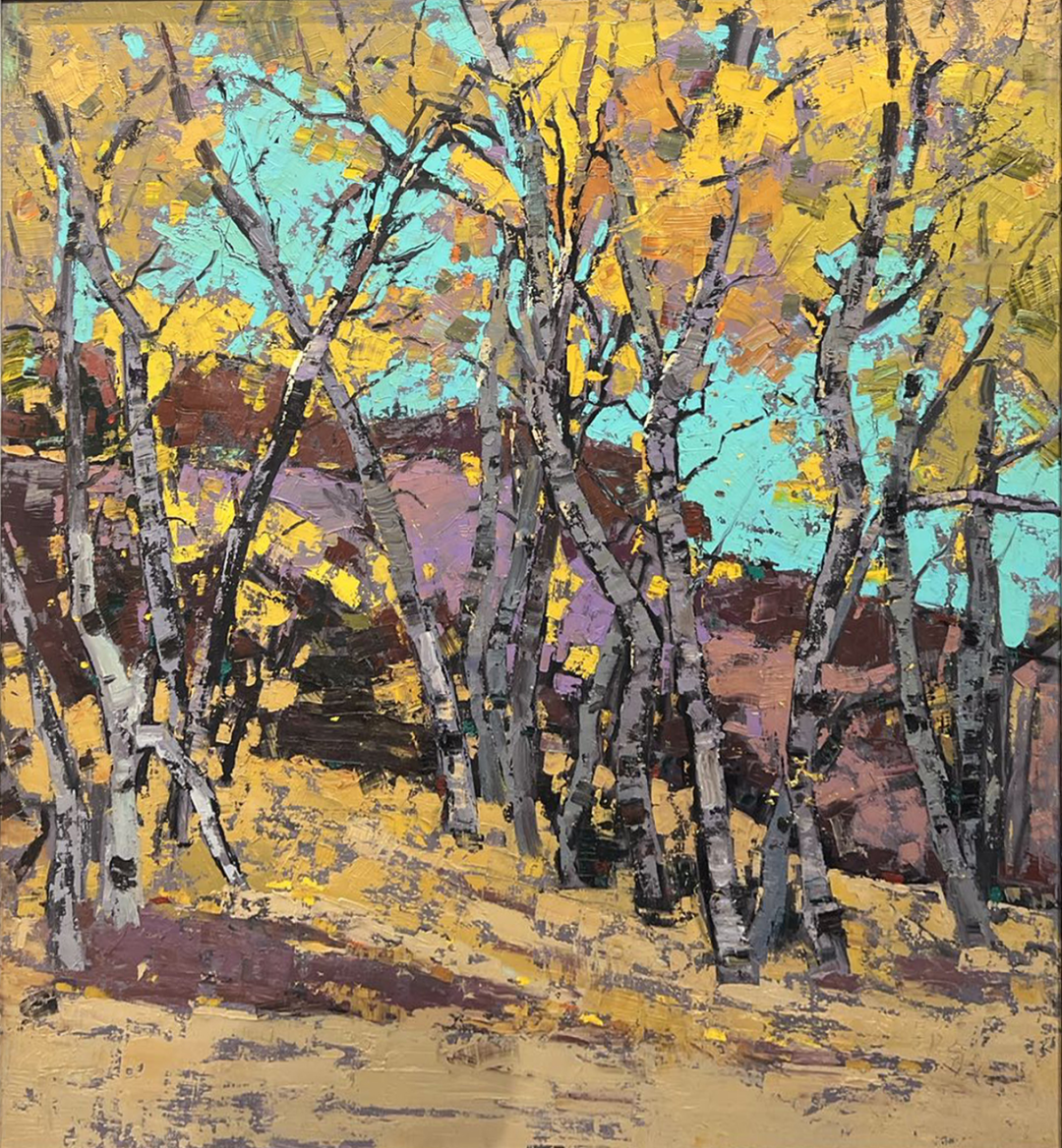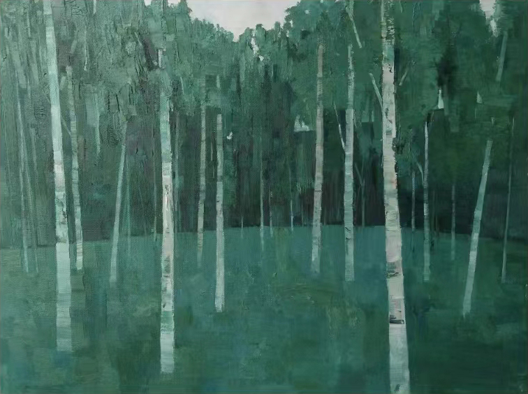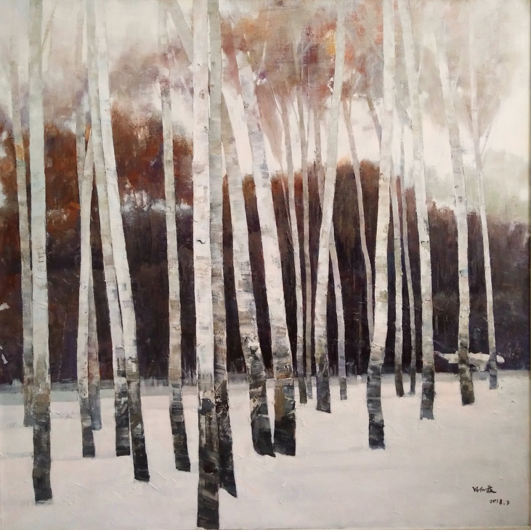 田存波 《安静的白桦林》 130cm×130cm 油画