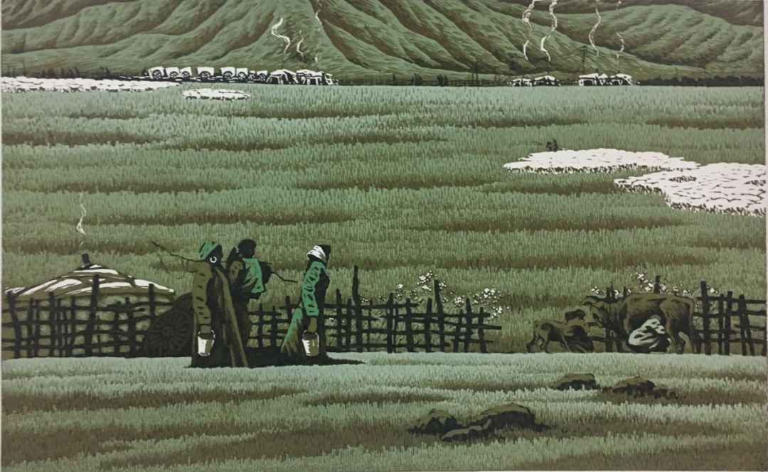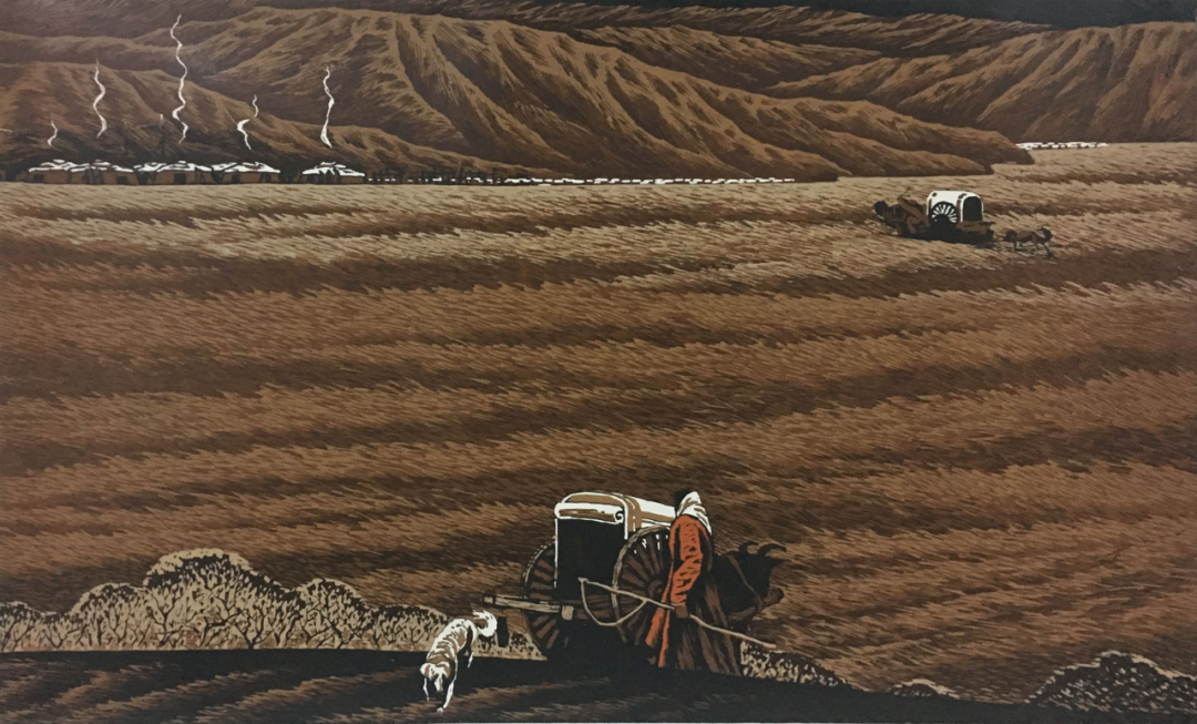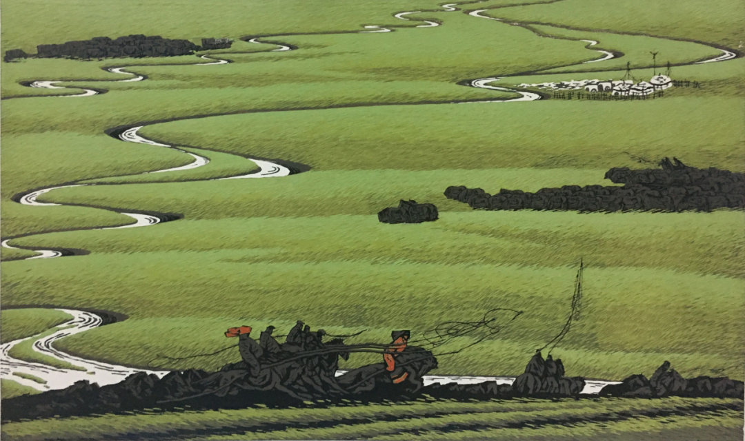 罗中伟 《静静的霍林河》 45cm×65cm 水印木刻