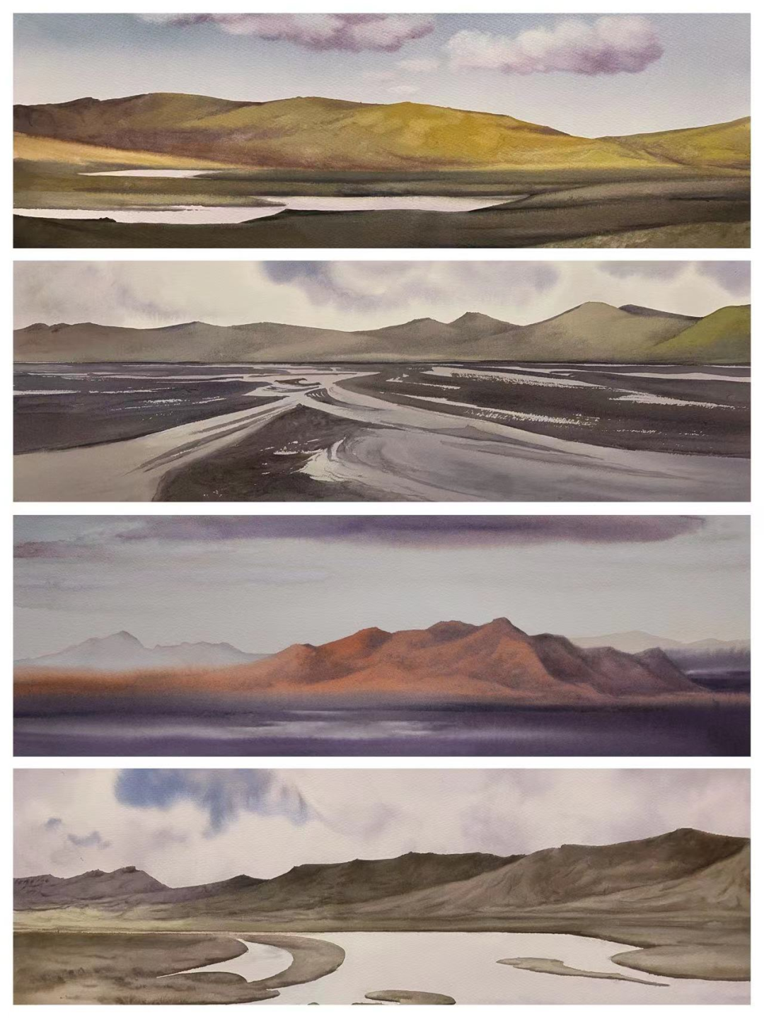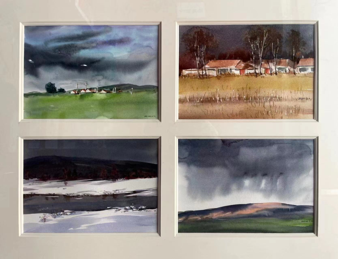 阿荣 《四季乌兰察布》 17cm×24cm×4 水彩四联