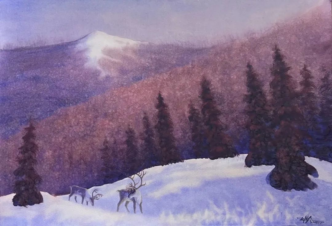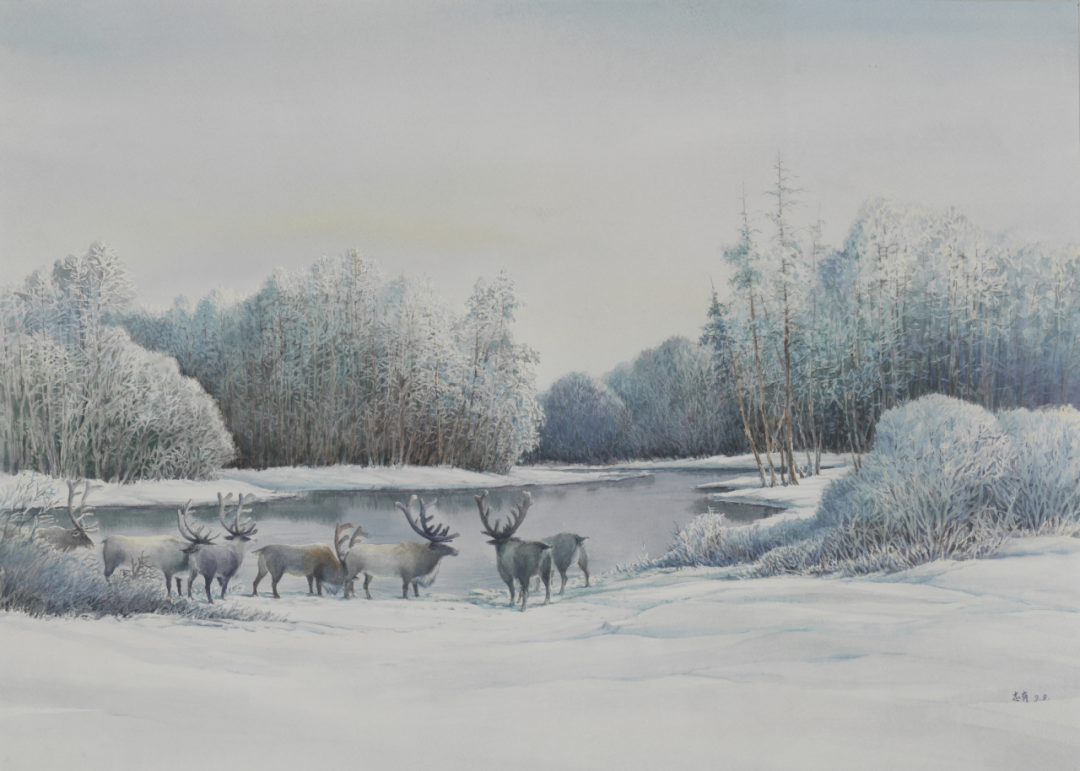 马志有 《驯鹿》 54cmX75cm 水彩