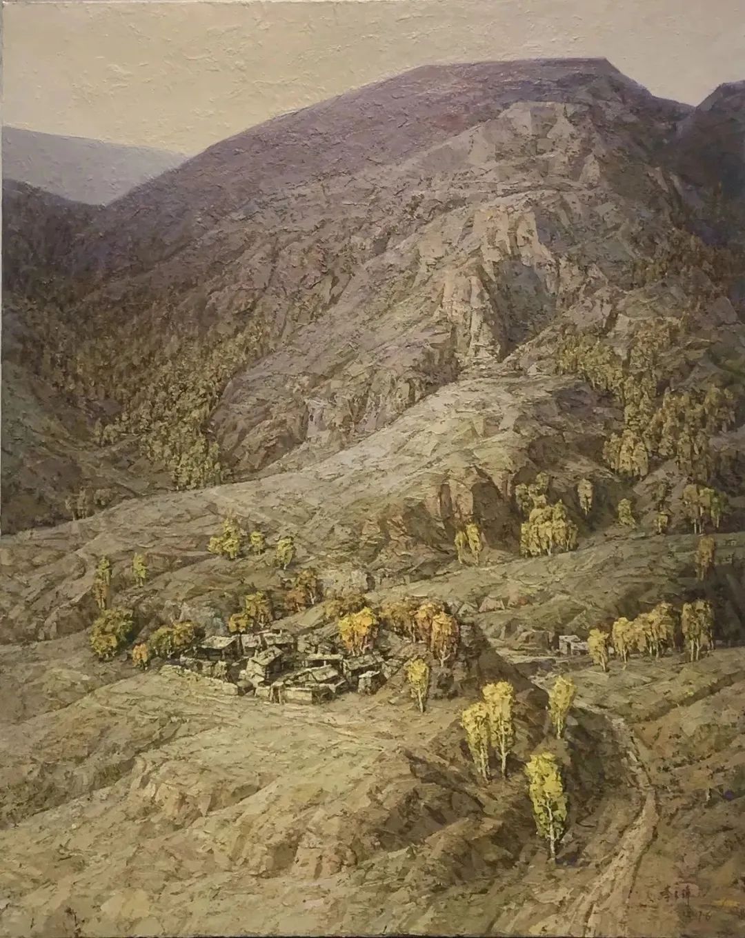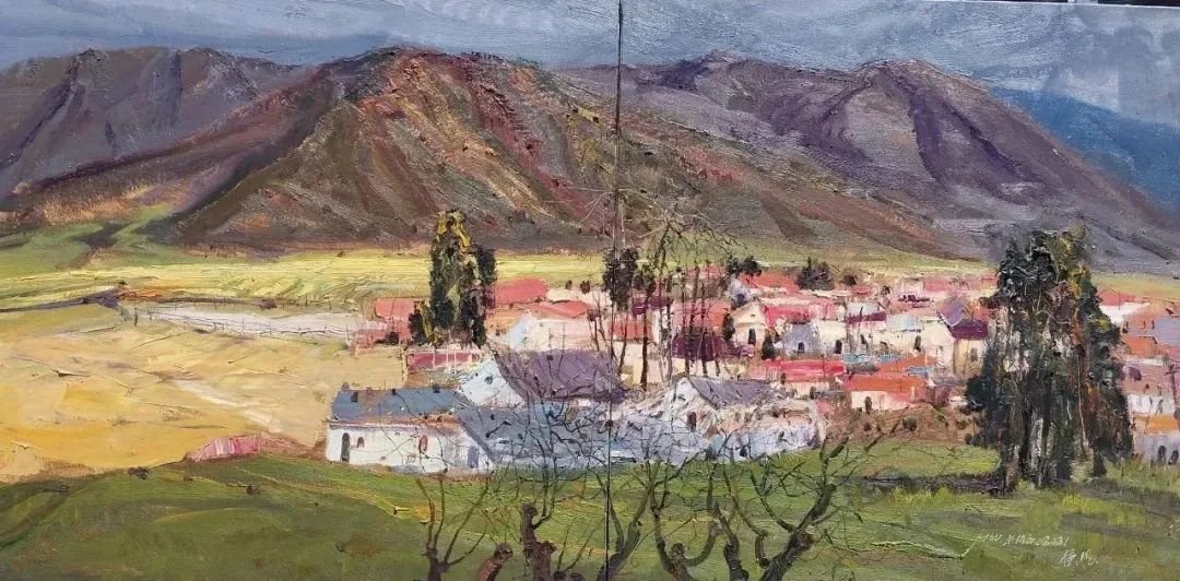 侯明 《后山村落》 160cm×80cm 油画