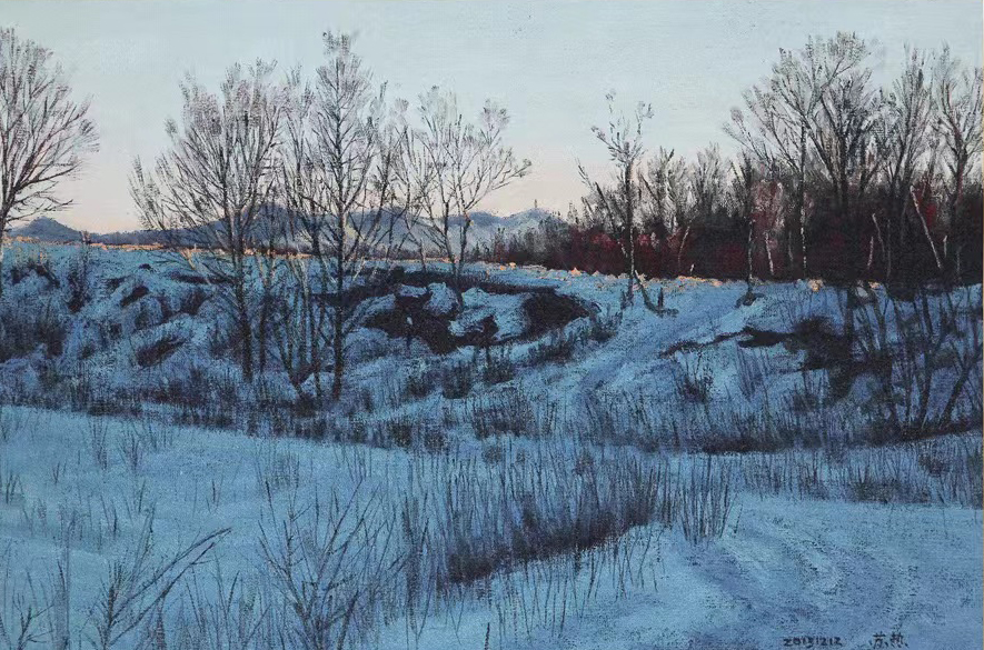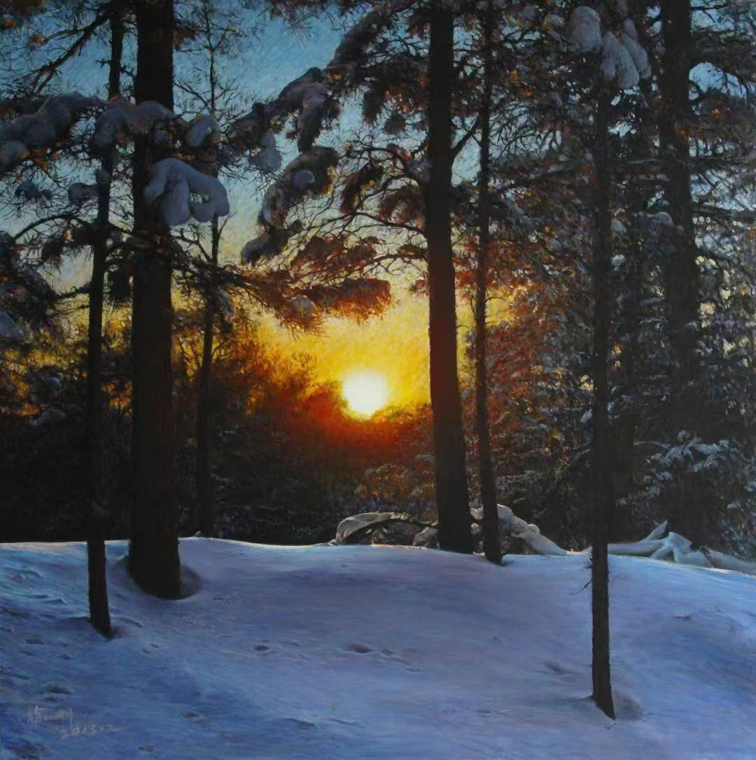 徐刚 《寒林长影》 100cm×100cm 油画