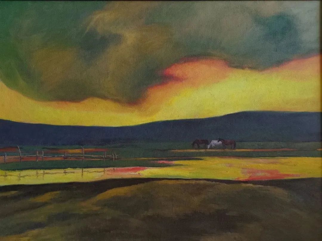 侯淑琴 《锡林河晚霞》 60cm×80cm 油画