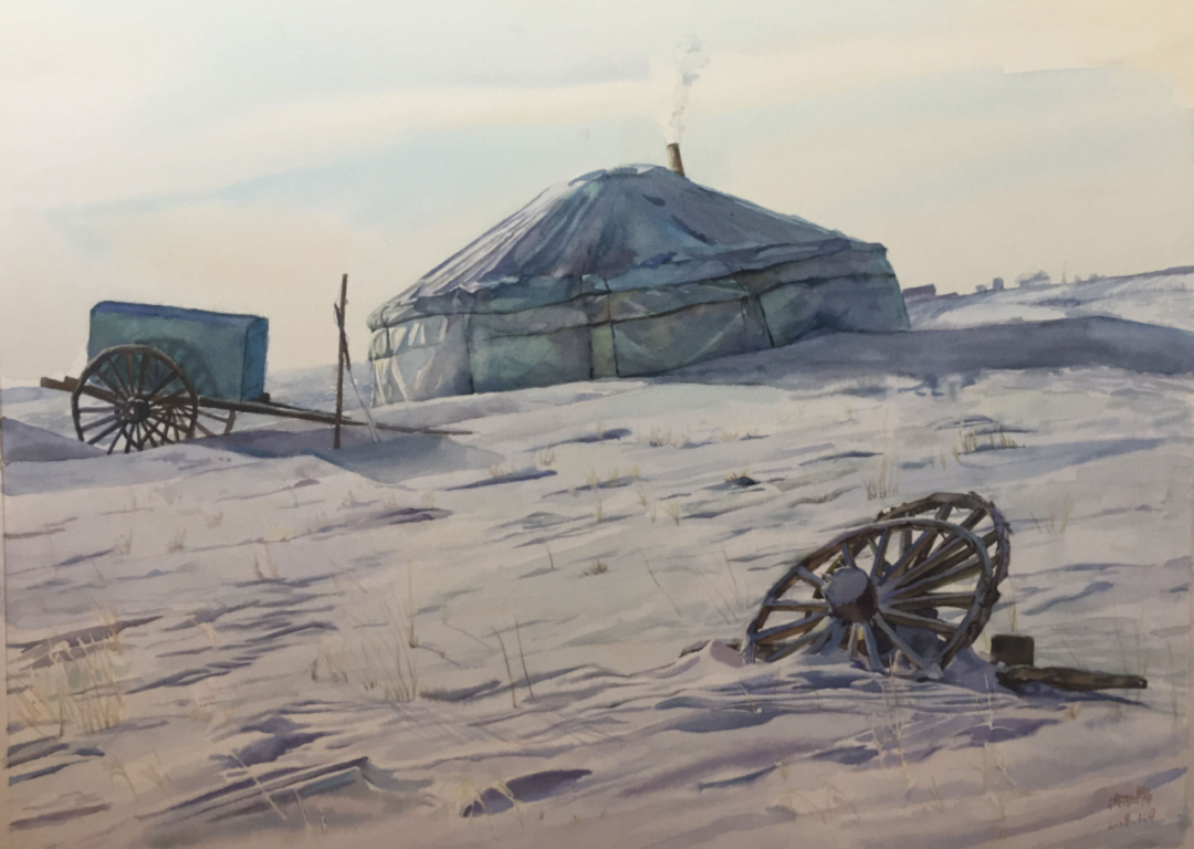 黄文刚 《巴尔虎草原的冬日》 111cm×68cm 水彩