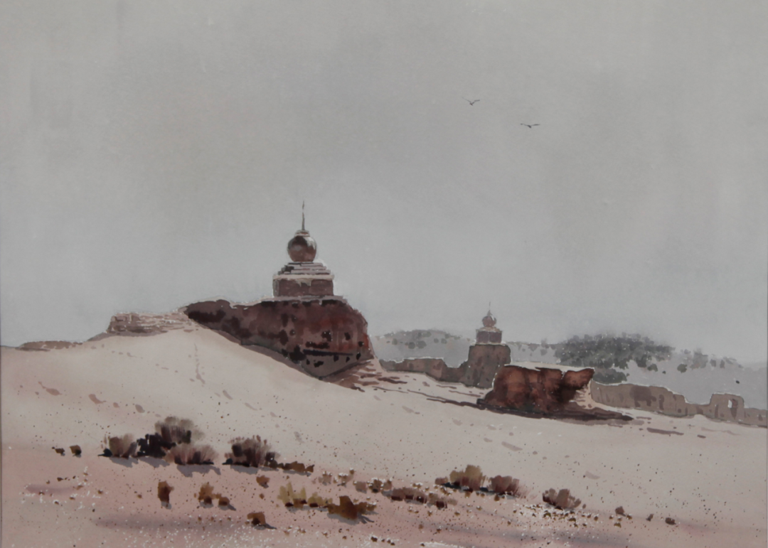 高特木乐 《黑水城遗址》 64cm×38cm 水彩