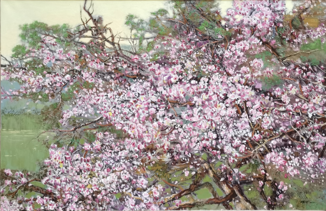王治平 《桃花依旧笑春风》 120cm×80cm 油画
