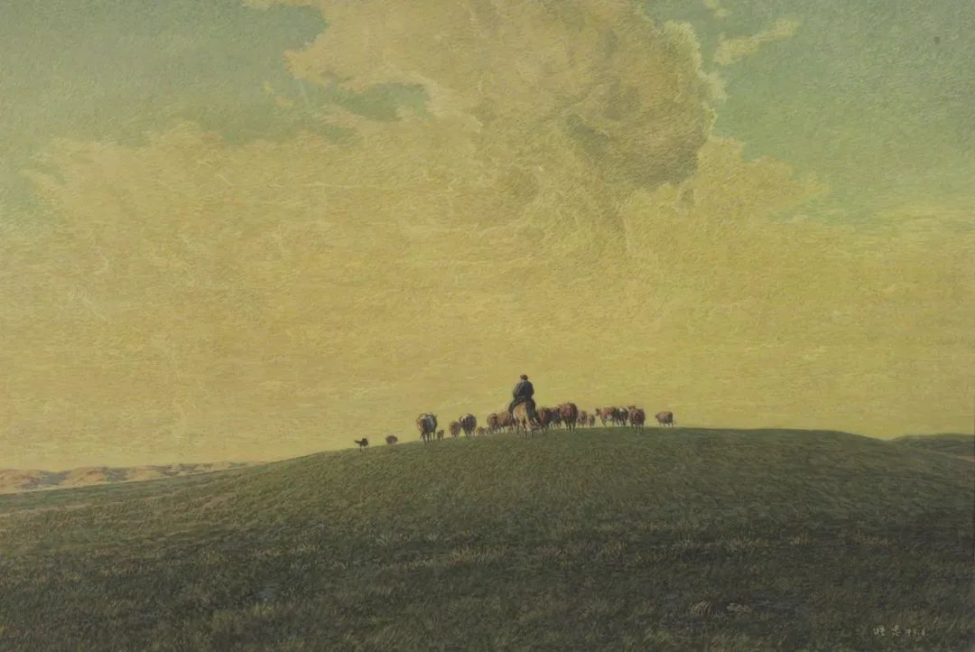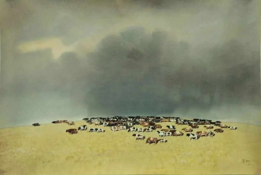 张忠 《巴特尔的牛群》 49.5cm×73.6cm 水彩