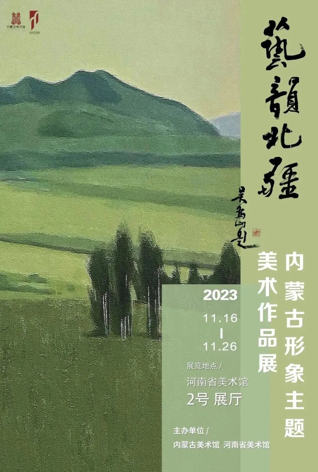 这是内蒙古美术作品首次在河南省美术馆集中展示。本次展览精选了一批在创作技法和风格上展现“北疆文化”主题的代表性作品,着重以内蒙古自治区12个盟市独特的自然风光、人文景观、生态面貌为底色,描绘内蒙古草之茂、林之郁、湖之美、水之秀、田之沃、沙之魅,讲述内蒙古各族人民聚力筑牢祖国北疆万里绿色屏障的时代故事。寄望通过此展进一步加强豫蒙两地美术创作交流互鉴,深化两地文艺事业合作共建。聚力引领豫蒙两地美术工作者在新时代新征程上,用手中的画笔、眼中的万象、胸中的信仰,描绘出更加壮美的新画卷,继续为建设美丽中国贡献力量!