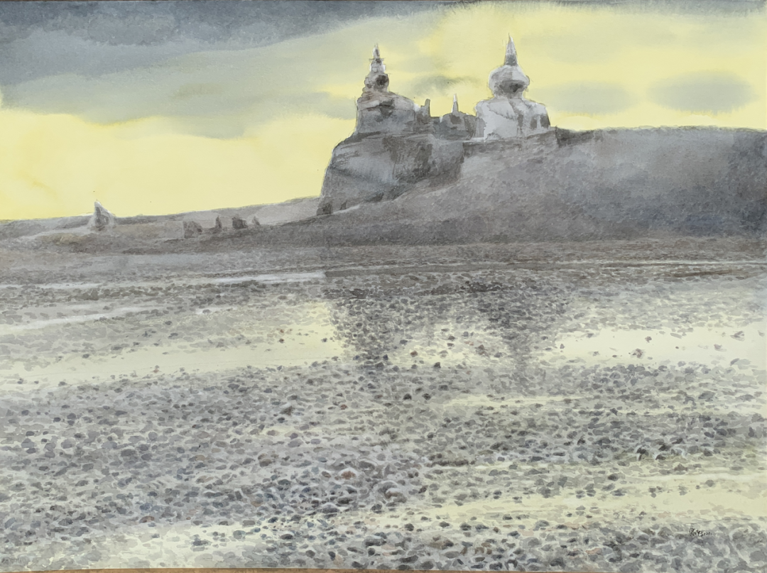 塞南 《黑城遗址》 78cm×52cm 水彩