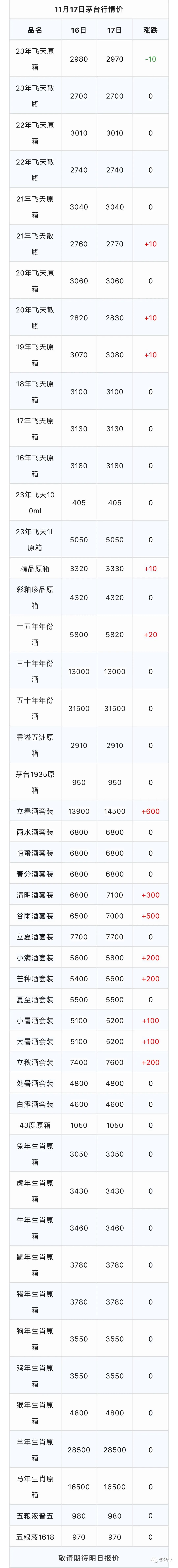 华茅(金奖) | 53度/500ml | 590 | 590 |