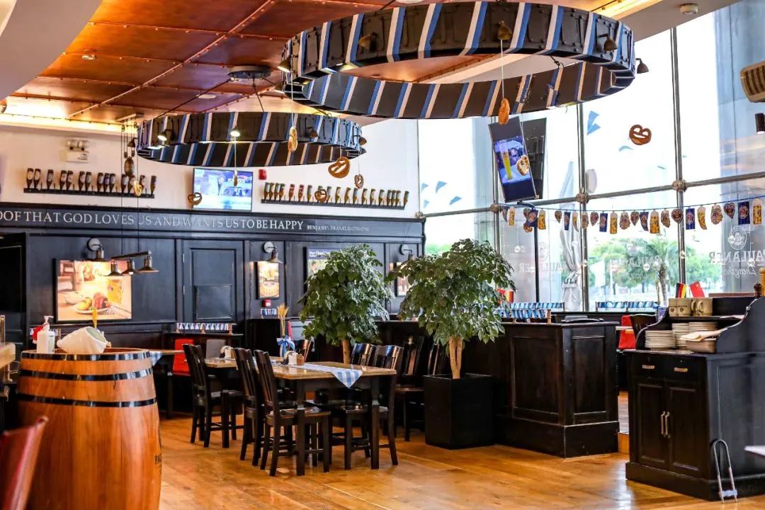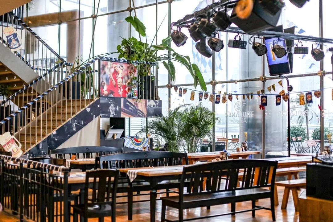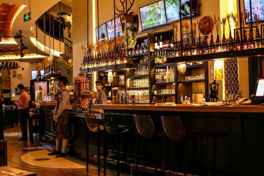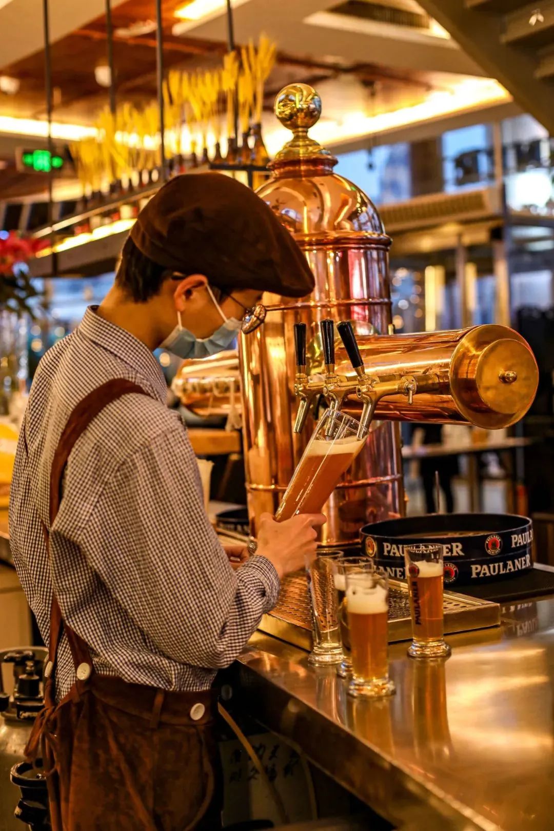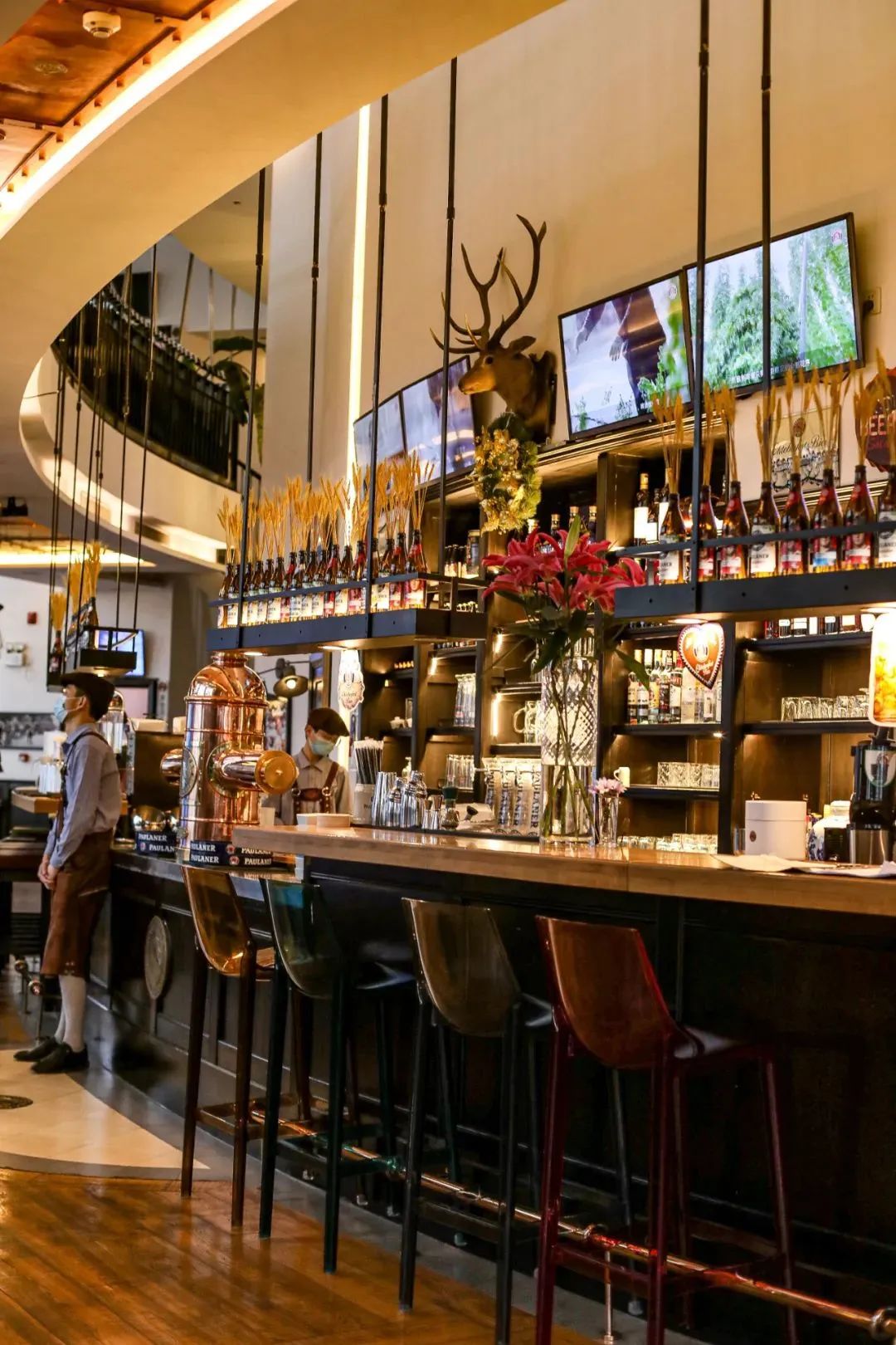 走进普拉那德国啤酒花园,仿佛穿越到上世纪的德国小镇~暖暗灯光、棕木桌椅、年代感的照片墙。