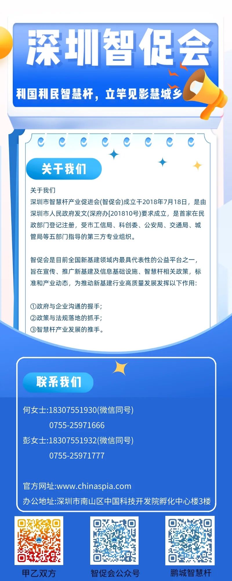 参加本次会议的有深圳市工业和信息化局信息基础设施处处长张文平、深圳市政协经济委员会副主任、浙商总会副会长、深圳市浙江商会会长夏炜、深圳市人大代表、市人大常委会经济工作委员会委员、市智慧杆产业促进会会长王海龙,以及来自市、区人大代表、政协委员、市工业和信息化局、市公安局、市住房和建设局、市交通运输局、市建筑工务署、宝安区政务服务数据管理局、坪山区政务服务数据管理局、市工商业联合会(总商会)、中国(深圳)知识产权保护中心及专家学者、行业精英等100多人出席此次会议。