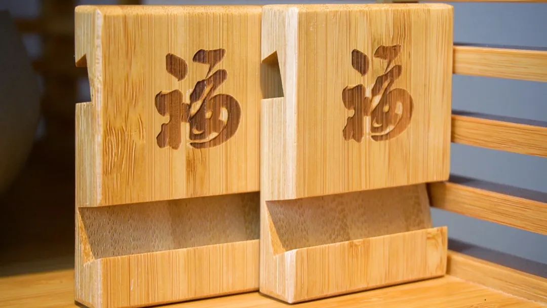 吴黄贵总经理指着一款融入福文化的手机支架文创竹产品告诉我们,目前出货量已将近一百万个了,如今竹制品已逐渐被市场接受,公司规模也持续扩大,去年产值已超过2000万元。
