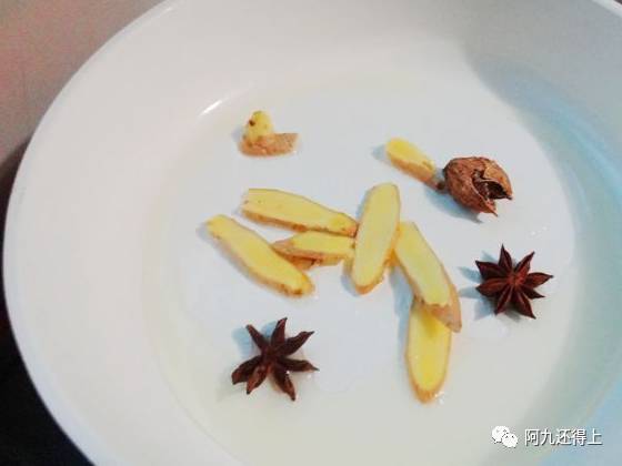 【啤酒烧猪蹄】猪蹄1只,啤酒一瓶,八角两个,草果一个,姜一块,五香粉一小勺、生抽一汤匙,老抽少许,味精少许。