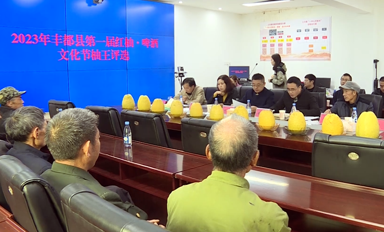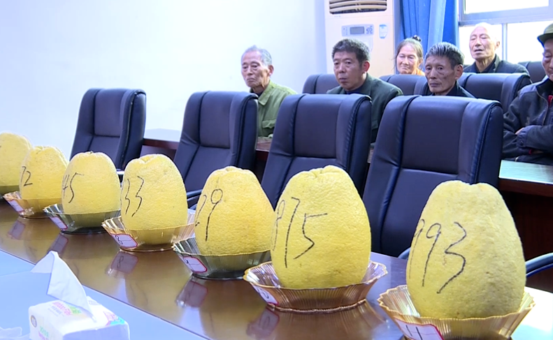 来自三元、仁沙、青龙、双龙、兴龙等乡镇的柚农们将采摘的新鲜柚果送到评选现场,在经过逐一登记、编号抽签、称重后整齐地摆放在评选台上。来自县农业农村委、重庆丰都红心柚协会的评委们对照标准,仔细观察每枚柚果,从果形、色泽、光滑度三个方面逐项进行打分。