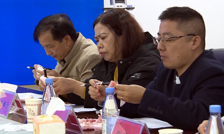 随后,工作人员切开柚果,对果肉进行了重新称重,评委详细查看柚果品质,分别对皮层厚度、囊斑均匀、果肉内裂、色泽、种子、口感等方面进行打分。