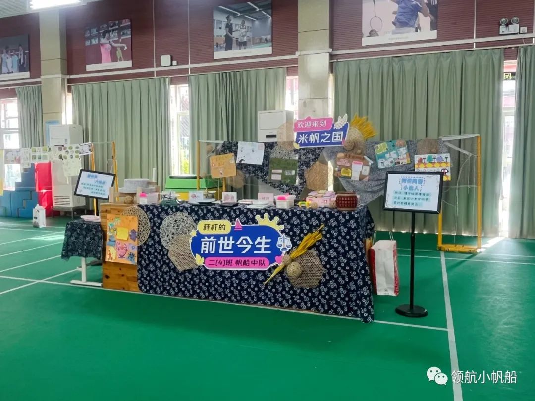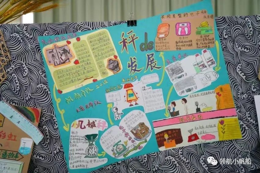 二(4)班帆船中队的主题是“秤杆的前世今生”。前期我们围绕这一主题展开了资料查阅、信息汇总、海报设计、物料收集、展台设计等准备工作。活动当天上午,家长志愿者们精心布置了我们班的摊位。