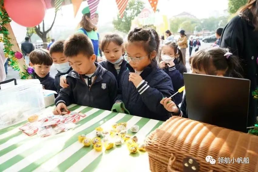 班里的其他小朋友开始了“逛吃逛吃”的环节。校园里划分了博物馆区、美食区和游戏区,小朋友们拿着自己通过光盘行动获得的粮票,可以参加自己喜欢的活动,购买自己喜欢的美食和礼品。