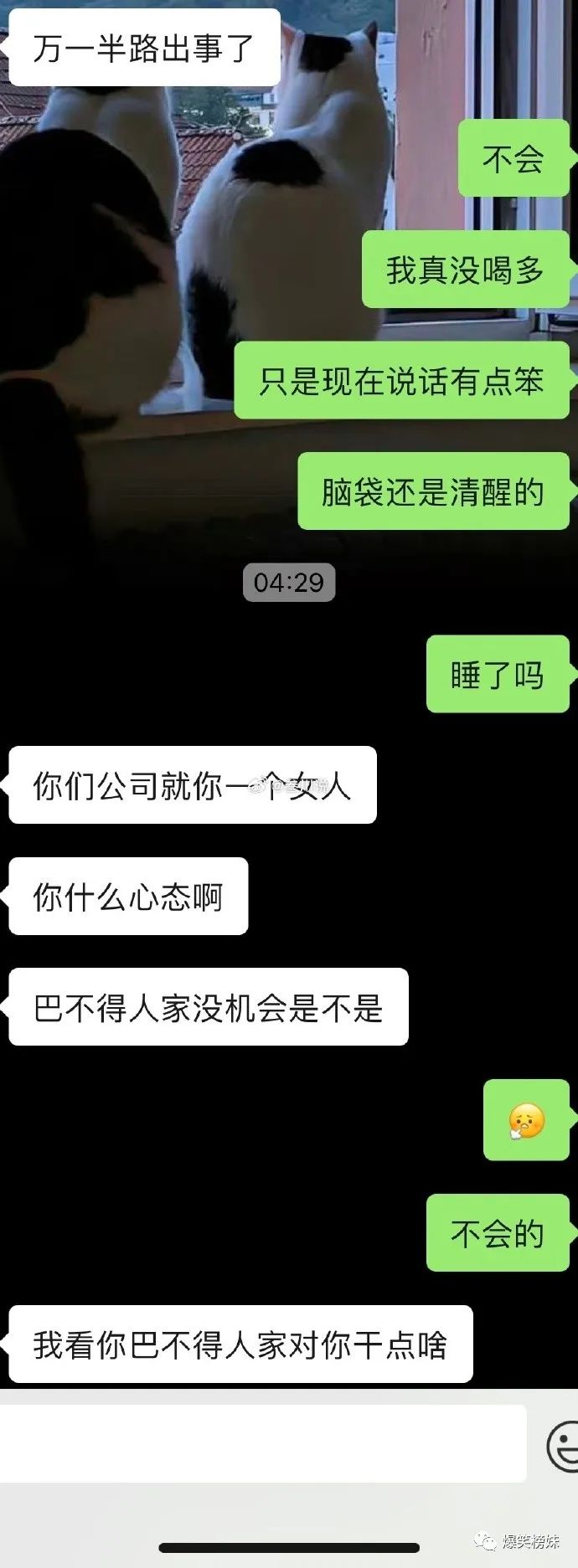 @嘉禾望岗下雨了:凌晨四点公司就你一个女生,你还高兴喝点酒,他的担心并无道理 。