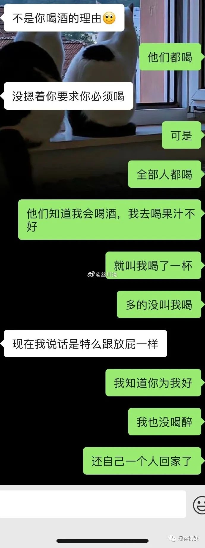 @GZZZLN:你们公司就你一个女生,你确实不该喝,只不过他后面说的也比较难听。