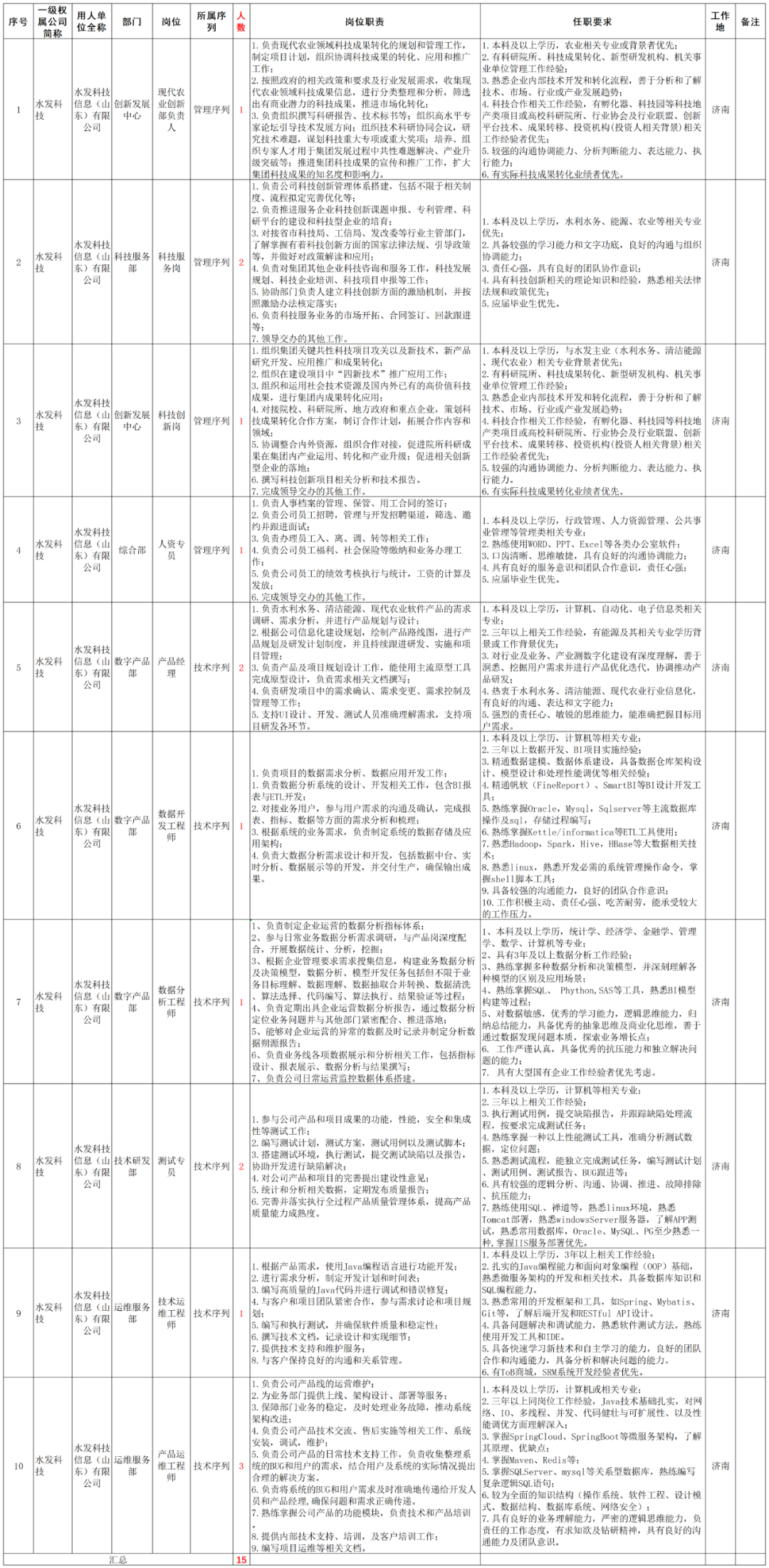 水发集团权属水发科技信息(山东)有限公司为有效支撑公司经营发展,全面落实“人才强企”战略,现面向社会诚聘英才。