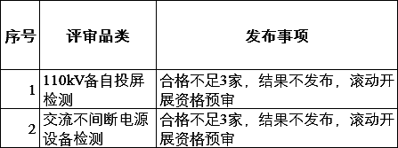 110kV备自投屏检测、交流不间断电源设备检测品类暂不发布资格预审结果。具体如下: