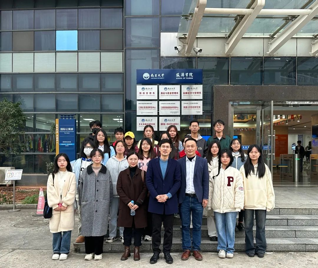 加强实践教学建设,提高应用型人才培养水平,11月15日下午,旅游与经济管理学院副院长梁轶奎和旅游实训中心主任余文君带领2022级会展实训队成员赴南昌大学旅游学院交流学习。