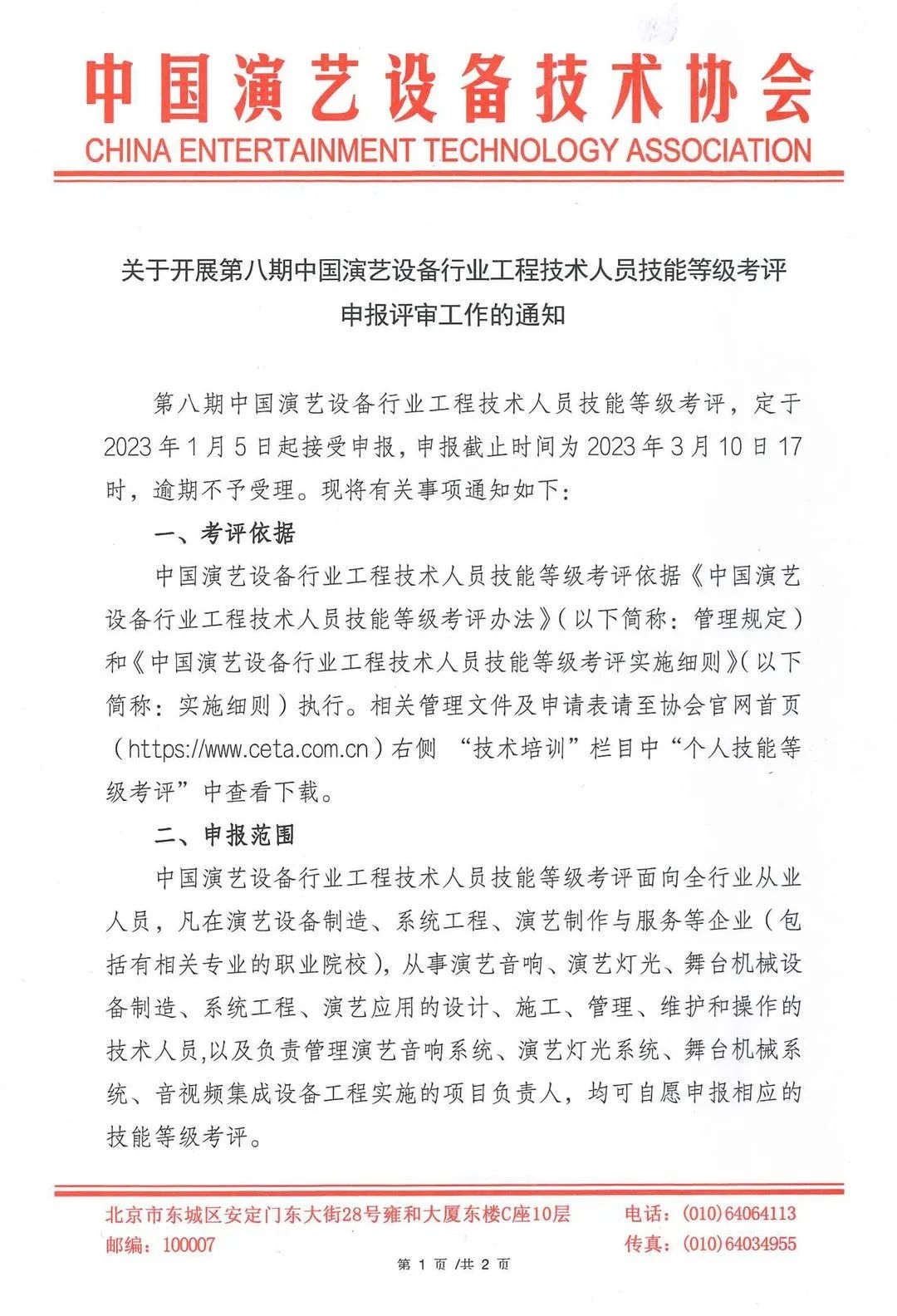 关于开展第八期中国演艺设备行业工程技术人员技能等级考评申报评审工作的通知