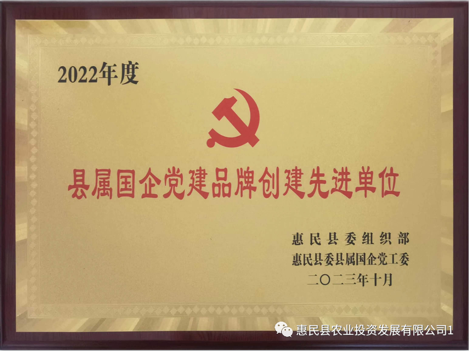 近日,全县组织工作推进会议召开。会上公布了2022年度惠民县模范机关建设工作表现突出单位,农投公司围绕“初心引航•兴农建功”党建品牌荣获惠民县“县属国企党建品牌创建先进单位”称号。