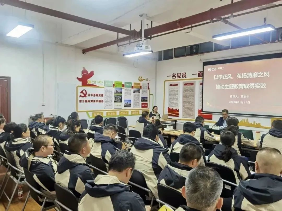 11月17日下午,柳农集团党委委员、副总经理覃志年到柳州市中友现代市场有限公司上“以学正风,弘扬清廉之风,推动主题教育取得实效”为主题的廉政党课。中友公司党支部书记、总经理章靖鹏以及中友公司全体党员、积极分子、中层干部、共40余人参会。