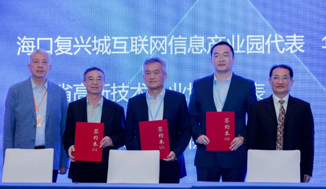 推介会现场,海口复兴城互联网信息产业园与海南省高技术企业协会、广东省高新技术企业协会、深圳市海南商会签订招商合作协议。未来,彼此将积极促进广东和海南两地的交流,组织两地企业的互学互访,开展相关的产业链融合、技术交流和市场合作等,共创自贸未来。