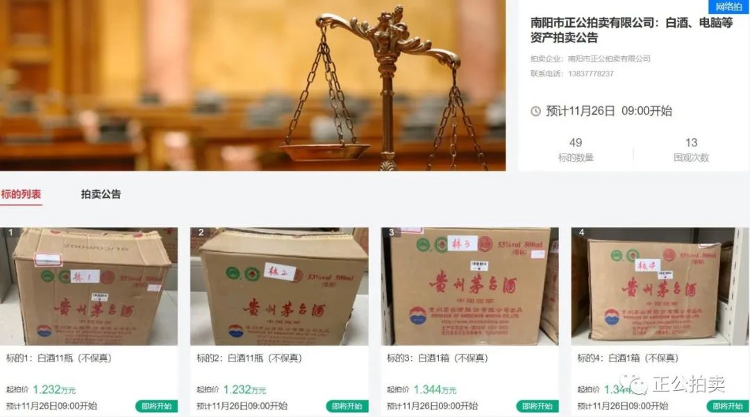 白酒、电脑等资产拍卖公告