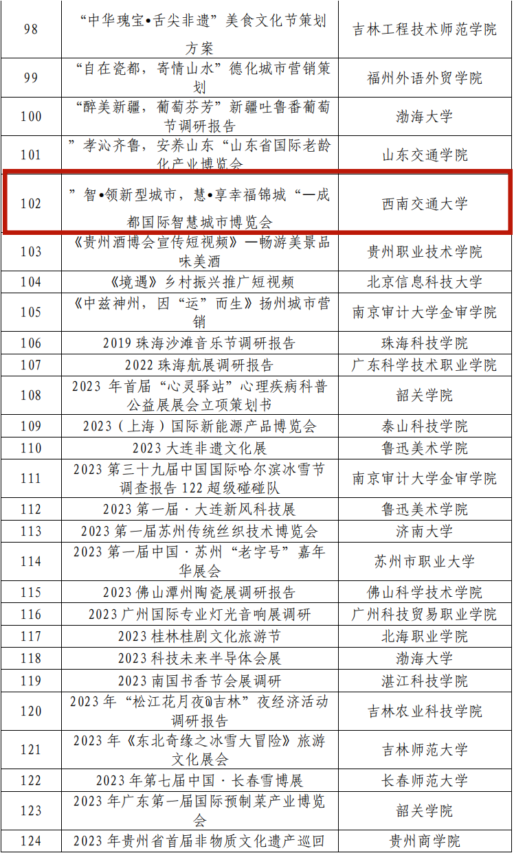 11月13日,全国高校商业精英挑战赛组委会发布《关于2023年(新加坡)国际商务会展策划大赛中国地区选拔赛暨第十七届全国高校商业精英挑战赛会展创新创业实践竞赛全国总决赛获奖结果公告》,明德希望学术顾问、国内多所知名高校校外导师杨言鑫老师带领的多支队伍,取得如下佳绩: