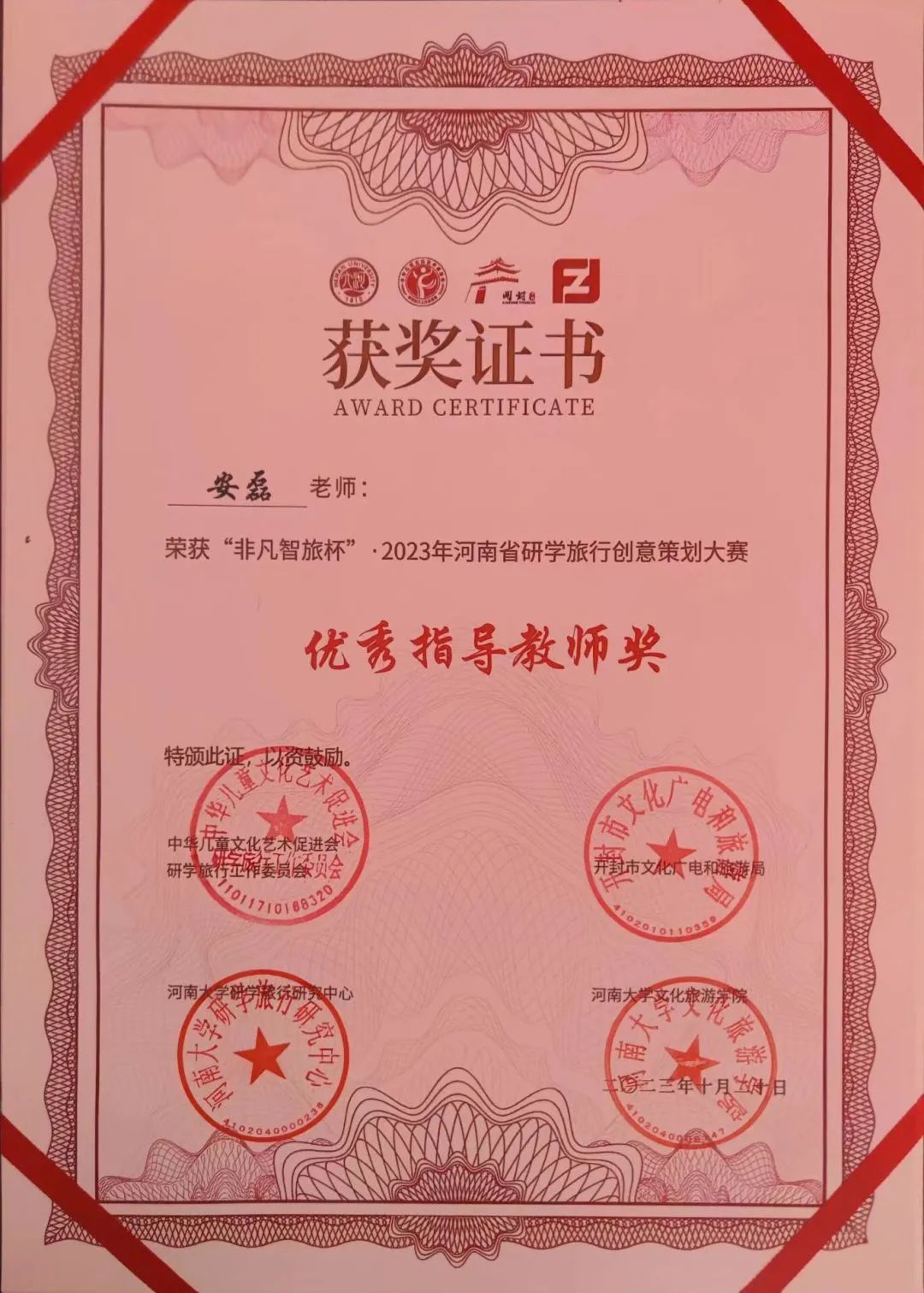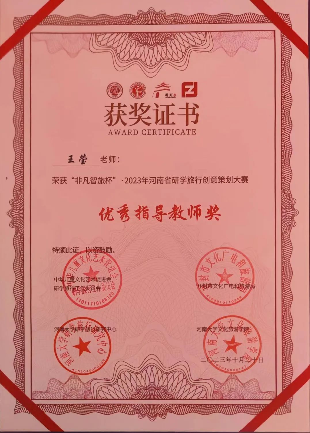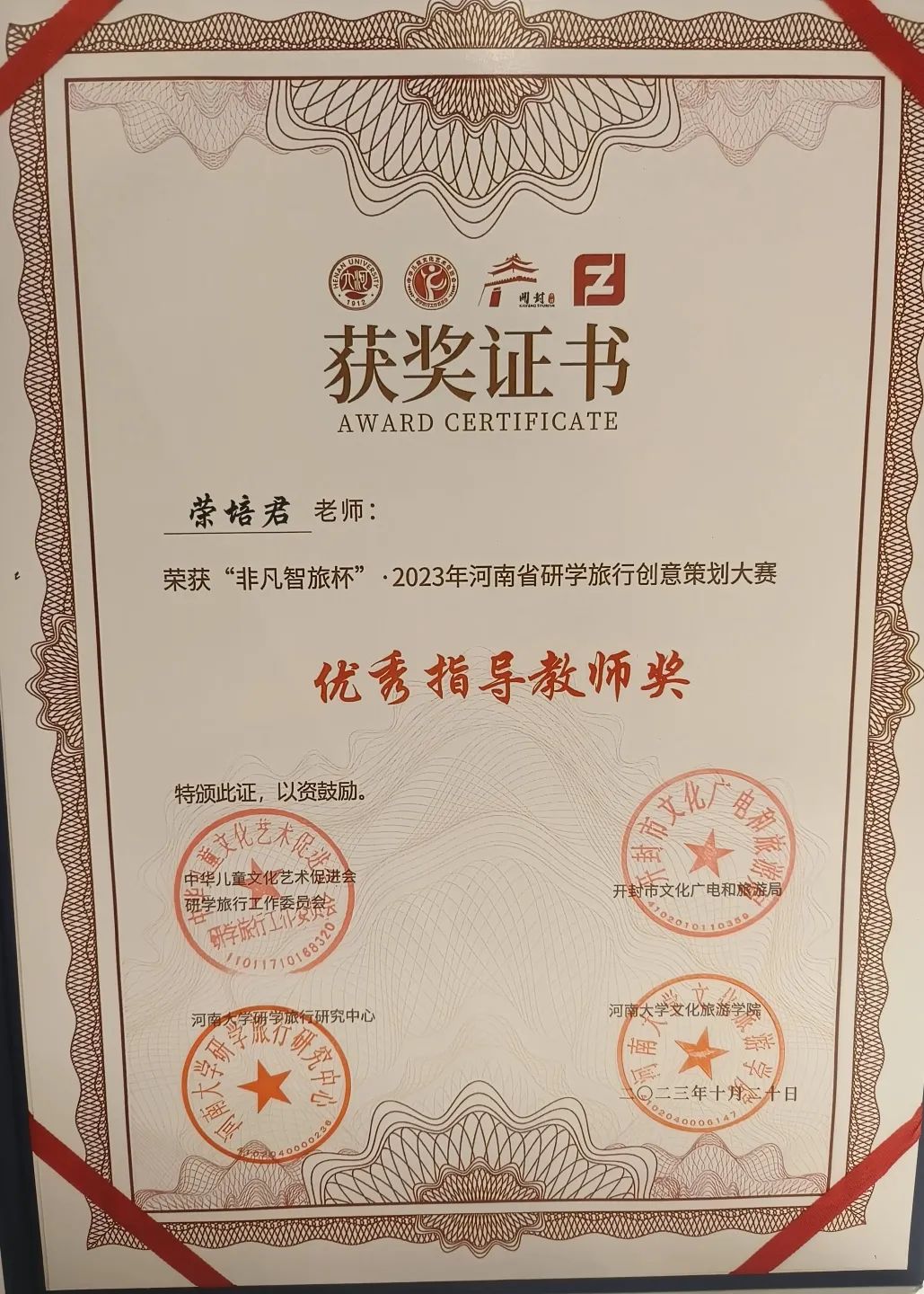 本次创意大赛以“寻迹黄河,豫见中国”研学旅行课程创意设计为主题,由河南文化和旅游厅指导举办。大赛分为初赛、复赛和决赛三部分,在5月至6月的初赛阶段,在荣培君、安磊、尚雯雯三位老师的指导下,我院三支队伍依据自身专业知识,充分发挥团队能力,以鲜明详实的作品成功入围决赛。在决赛的现场展示和评委提问阶段,我院学生以大方得体的表现,认真流利的回答得到评委老师们的充分肯定。最终,三支队伍“听懂掌声队”、“豫州班”和“成群结队队”分别获得了大赛的一等奖、二等奖和三等奖,充分展示了新时代大学生的精神风貌。