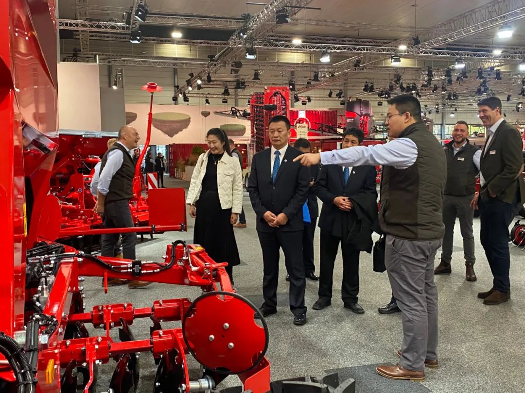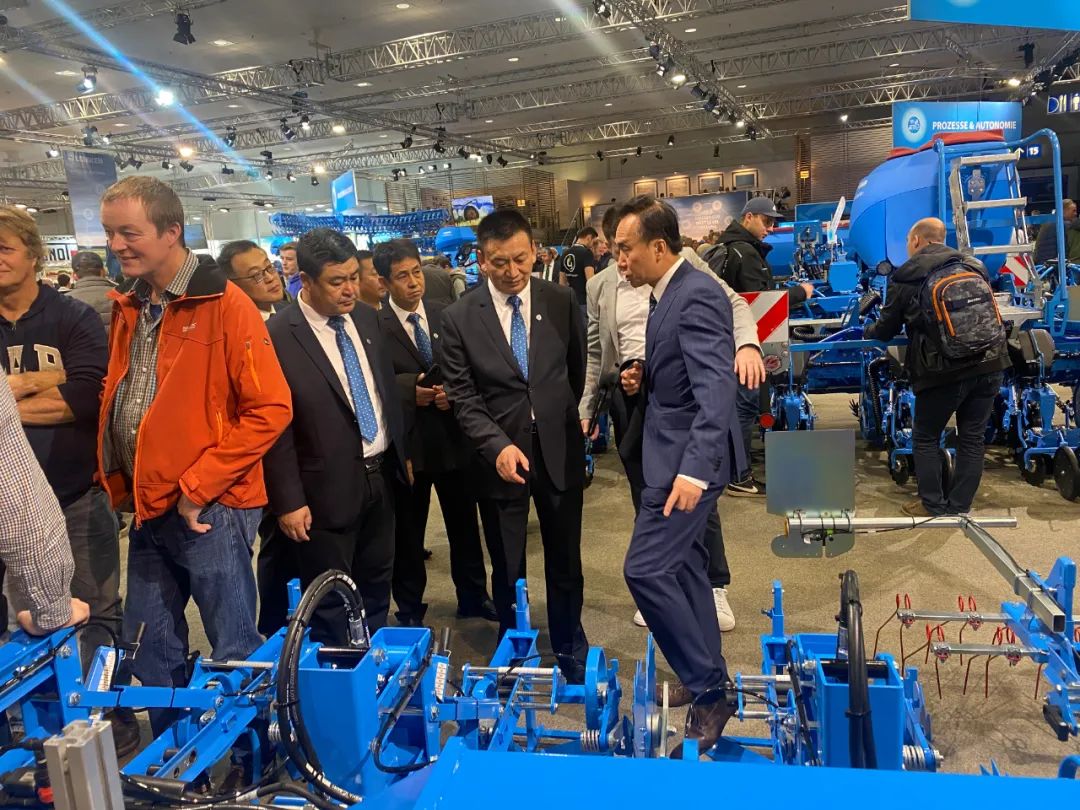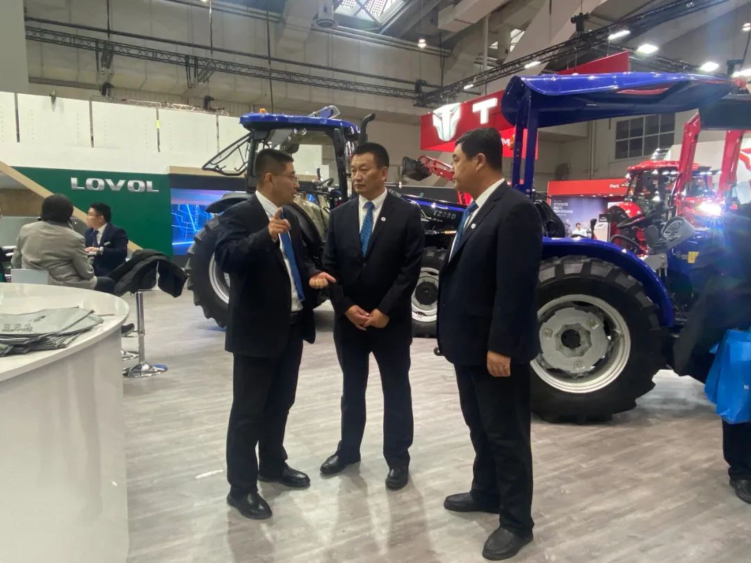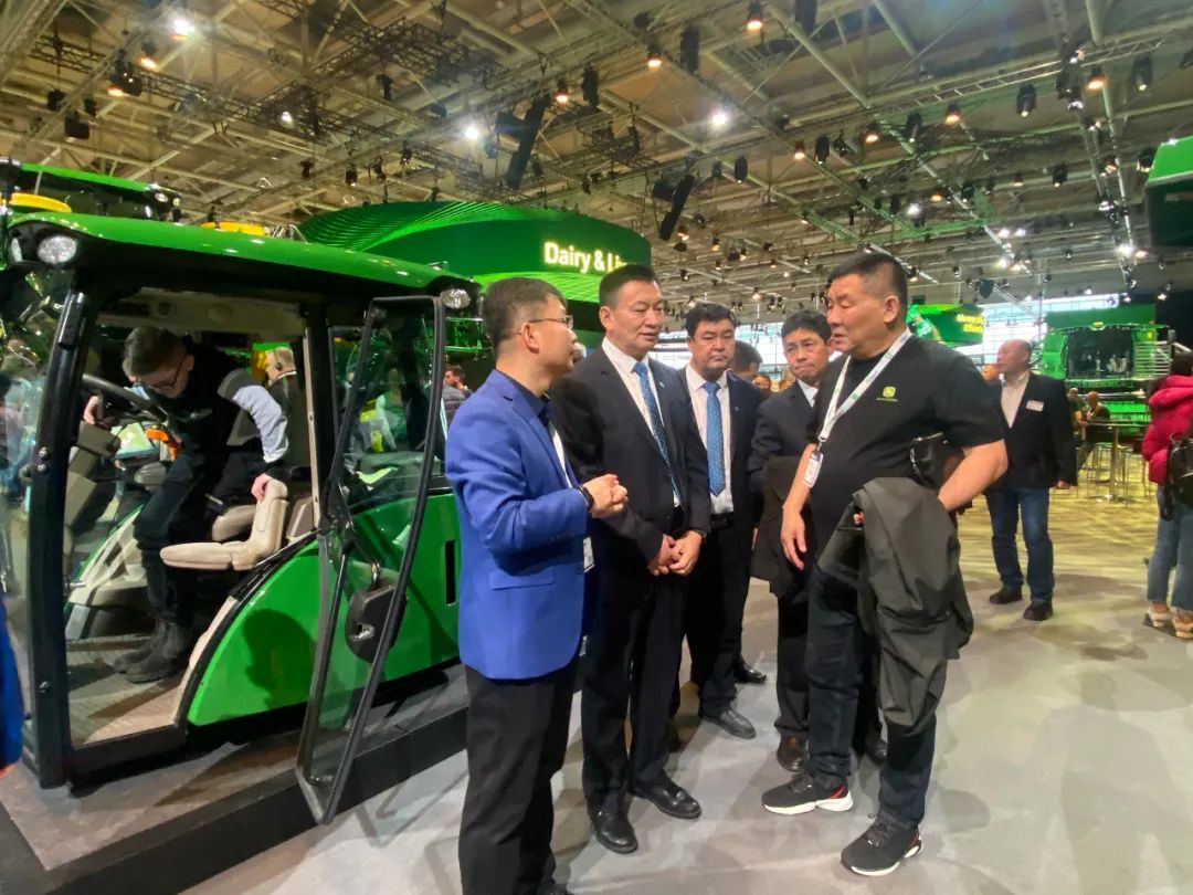 汉诺威农机展是由德国农业协会(DLG)主办,集农业机械、设备和管理为一体的全球最大的国际农业机械展会,每届展会都吸引了来自全球各国的展商与观众。本届展会围绕“绿色生产力”主题,为国际耕地和作物种植提供最全面和多样的创新技术与产品解决方案,展示从作物保护喷雾器到无人机、从拖拉机到自动设备系统、从联合收割机到数字辅助系统的全系列农业机械。展会期间,代表团一行前往中国一拖集团、潍柴雷沃,德国豪狮、科乐收、雷肯、格立莫,美国约翰迪尔,波兰尤尼亚等展位参观,并与一拖国贸公司总经理助理范子午、雷沃海外事业部总监孙德明深入交流,共同探讨国产农业机械智能化发展趋势及未来方向,洽谈合作事宜。