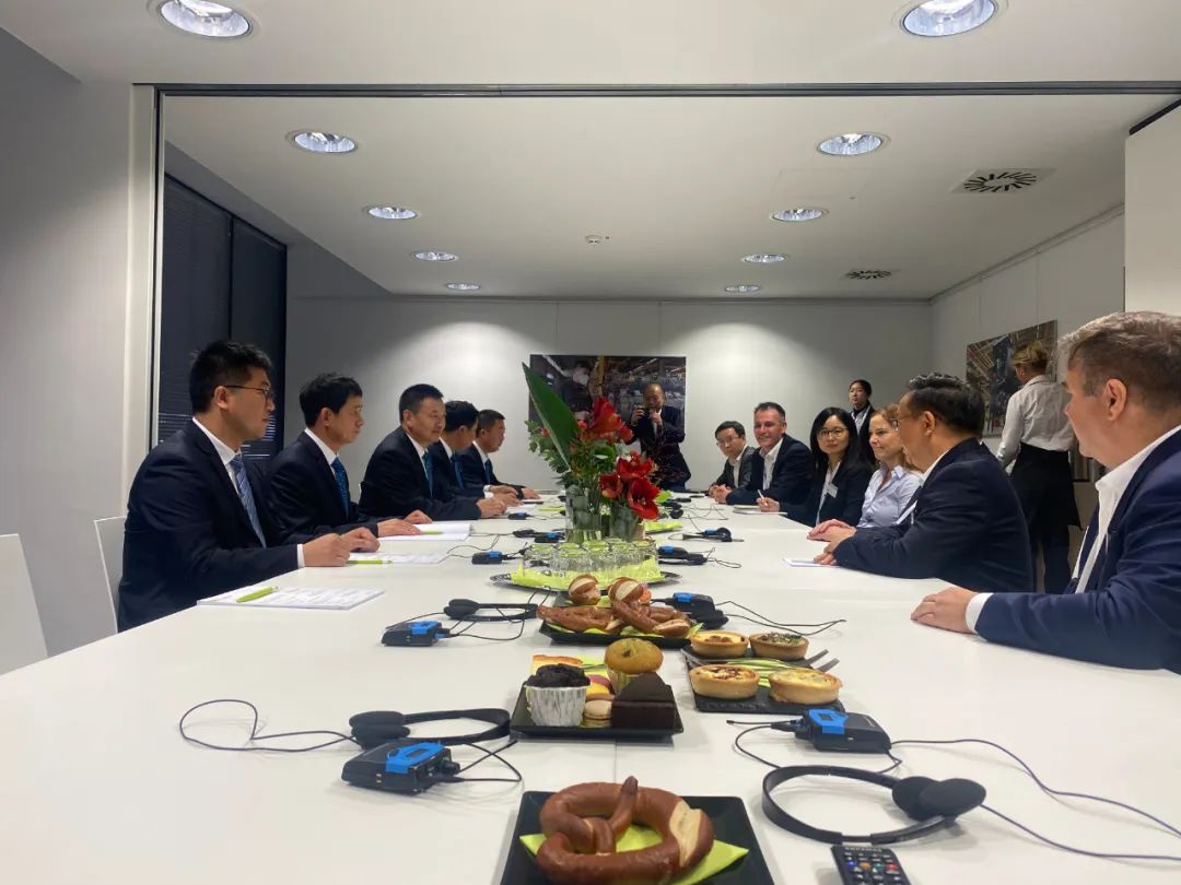 代表团一行首先与豪狮农业机械有限公司创始人米歇尔豪狮、德国豪狮全球销售总裁冯斯拓、豪狮中国总经理吕晓晴一行进行座谈。米歇尔豪狮详细了解了呼伦贝尔农垦集团公司近年来粮食种植规模及产出情况。他说,豪狮公司在现代农业领域积累了丰富的经验和研发技术,始终致力于保护土壤的健康,并注重提高粮食产量。郭平指出,集团公司具有得天独厚的自然资源优势,是国家重要农畜产品生产基地,在未来的农业发展领域我们要集中展现现有优势,加深与国际先进农机企业进行尖端智慧农业合作,进一步探索智慧农业科学管理模式,努力打造智慧农业建设新模式。