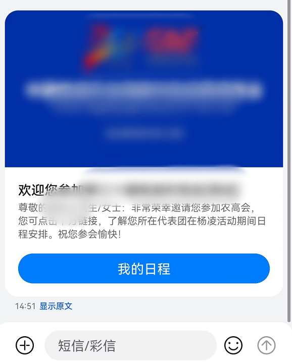 当然,如果还是担心嘉宾漏接微信消息,主办方还可以选择发送5G短信。5G短信不仅有图文提示,还能点击直接跳转到小程序页面查看行程,不用担心嘉宾不会操作进入微信小程序。