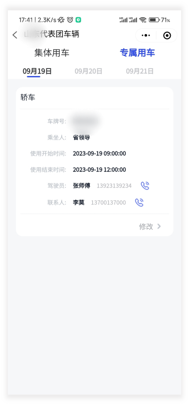 同时在行程开始前,嘉宾还会收到行程提醒,不再需要工作人员逐一发送,也避免了发送错误。