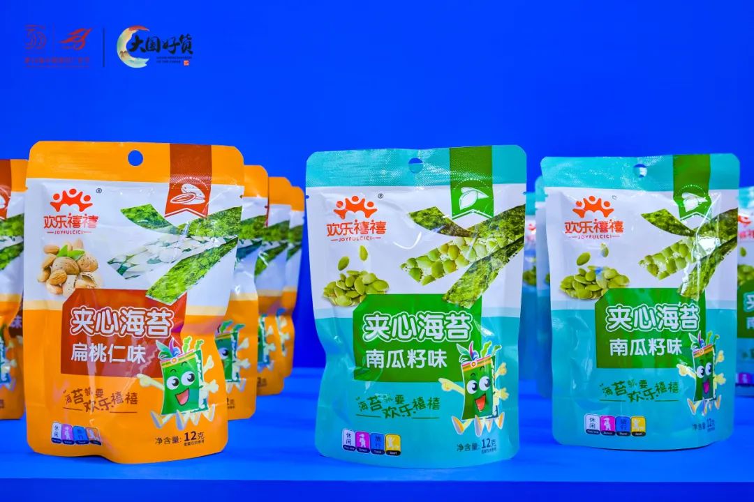 力绿集团携手“欢乐禧禧”、“农亨”品牌,展出了包括“岩烧海苔”、“调味海苔”、“海苔卷”、“夹心海苔”、“拌饭海苔”等多个系列的海苔产品,以其独特的口感和多样化的风味吸引了无数观众的目光。