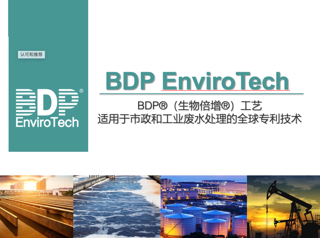 BDP环境科技公司总部位于美国马里兰州,在美国加州、法国及亚洲均设有子公司。公司拥有全球领先的主生化污水处理工艺技术及曝气技术-生物倍增工艺。工艺技术及产品 已在全球范围内广泛运用超过 65 个大型项目,应用范围包括市政污水、工业领域污水如石油化工、纺织印染、医药、半导体、精细化工、造纸、垃圾渗沥业等污水领域应 用。BDP 技术的应用规模从1000立方米每天到20万立米/每日。BDP已获颁美国国会及加州议会的环境特别贡献证书,并获得加州能源委员会及加州水资源管理局的特别财政支持。目前拥有10多项全球、美国及中国专利,并获得北美、欧洲及亚洲等专业机构认证。