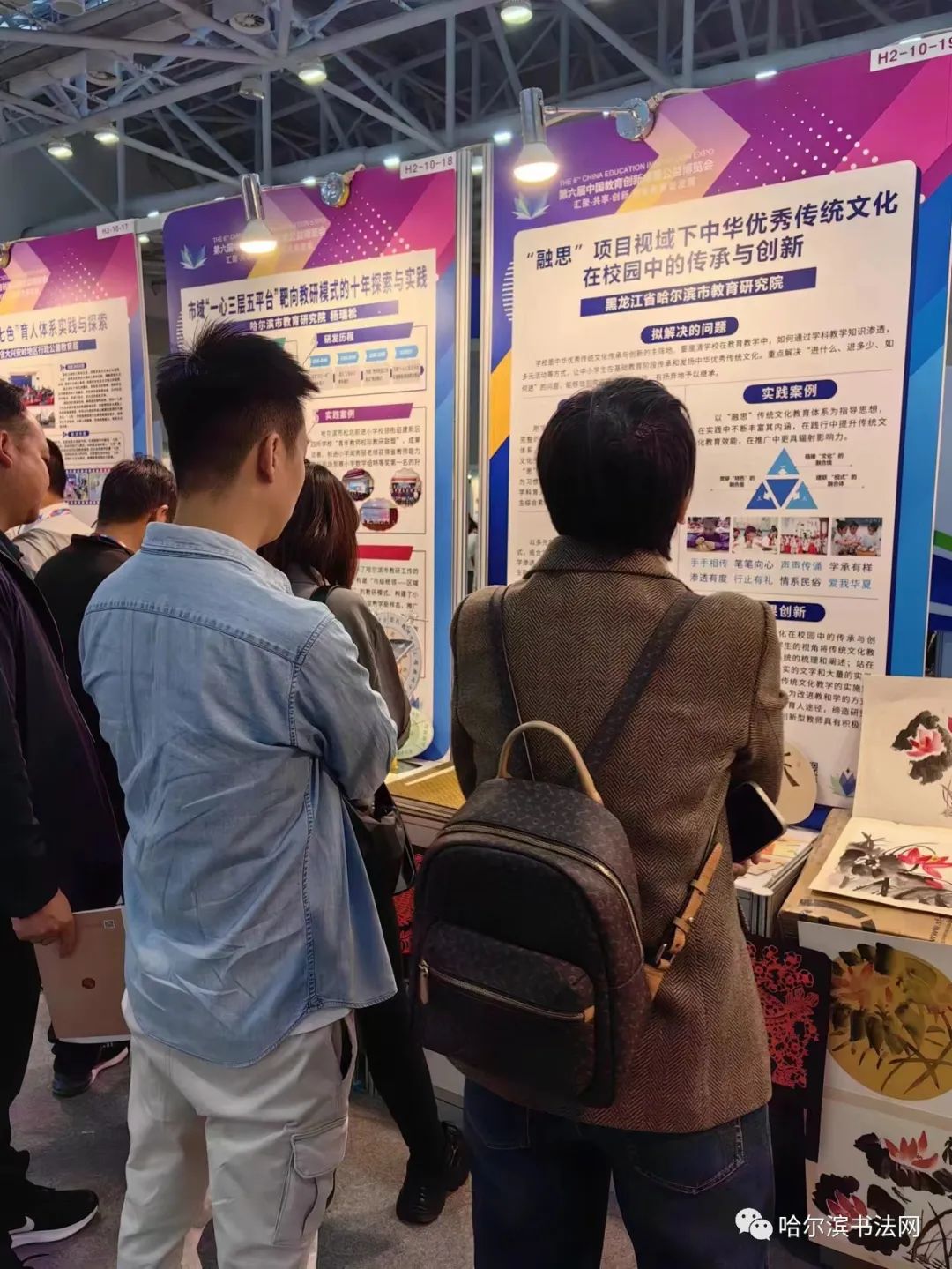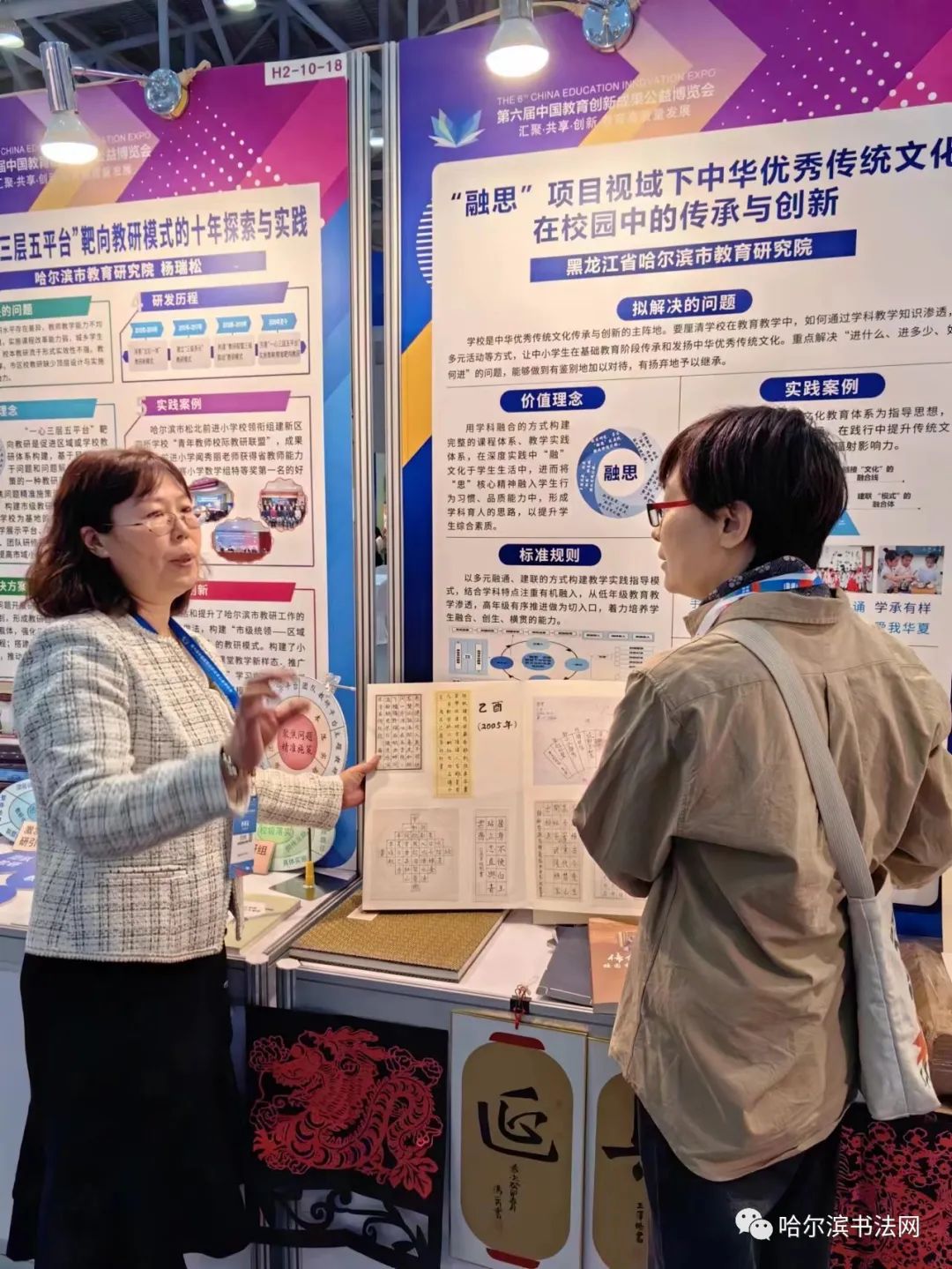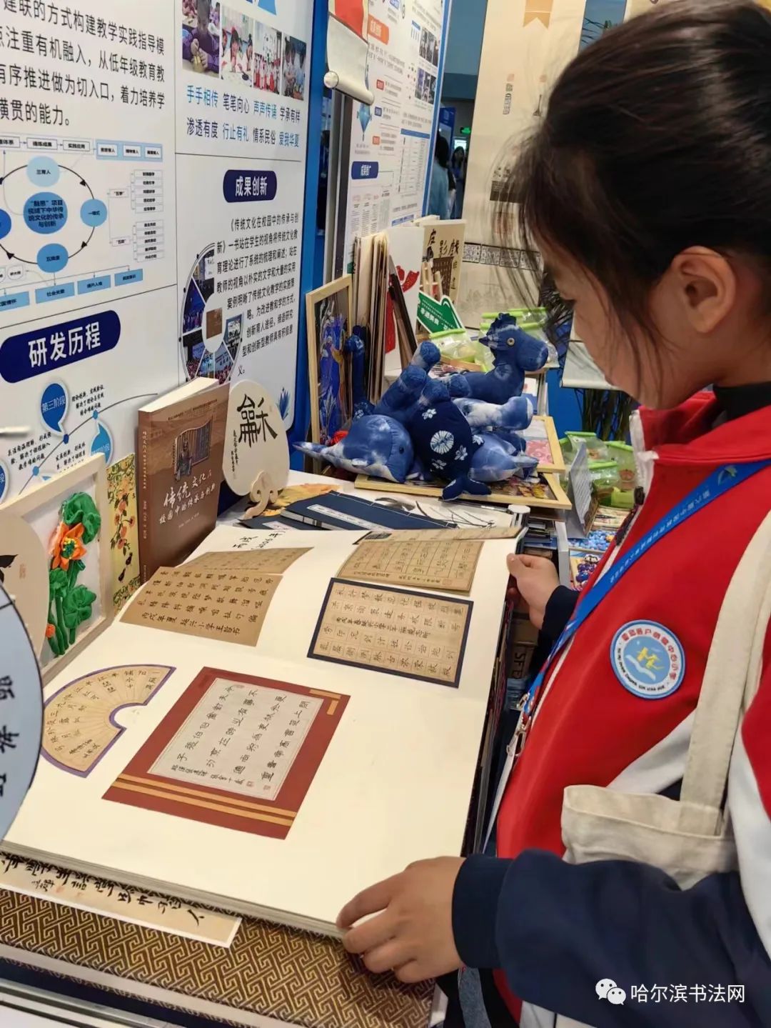 哈尔滨市书法家协会书法教学基地延兴小学闫维佳校长带着延兴小学校学生的书法篆刻作品参加第六届教博会展览!