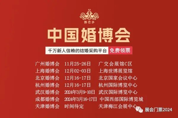 6、结婚攻略:中国婚博会还提供各种结婚攻略和小贴士,让你成为婚礼筹备的专家!无论你是想要了解婚礼流程,还是寻找策划灵感,这里都有你需要的一切!