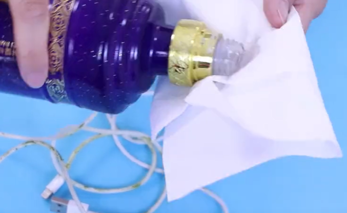 白酒的第二个用途可以有效清洁数据线。数据线有时候经常放在地上很容易发黑变脏。我们直接准备倒取一些白酒在纸巾上,然后给他擦一擦,就可以快速的清洁数据线。